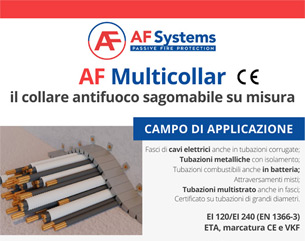 15/04/2025 AF SYSTEMS AF Systems presenta AF Multicollar: l'innovativo collare antifuoco modulare A cura di: Laura Murgia AF Multicollar è il collare antifuoco modulare di AF Systems per la sigillatura degli attraversamenti di impianti ...