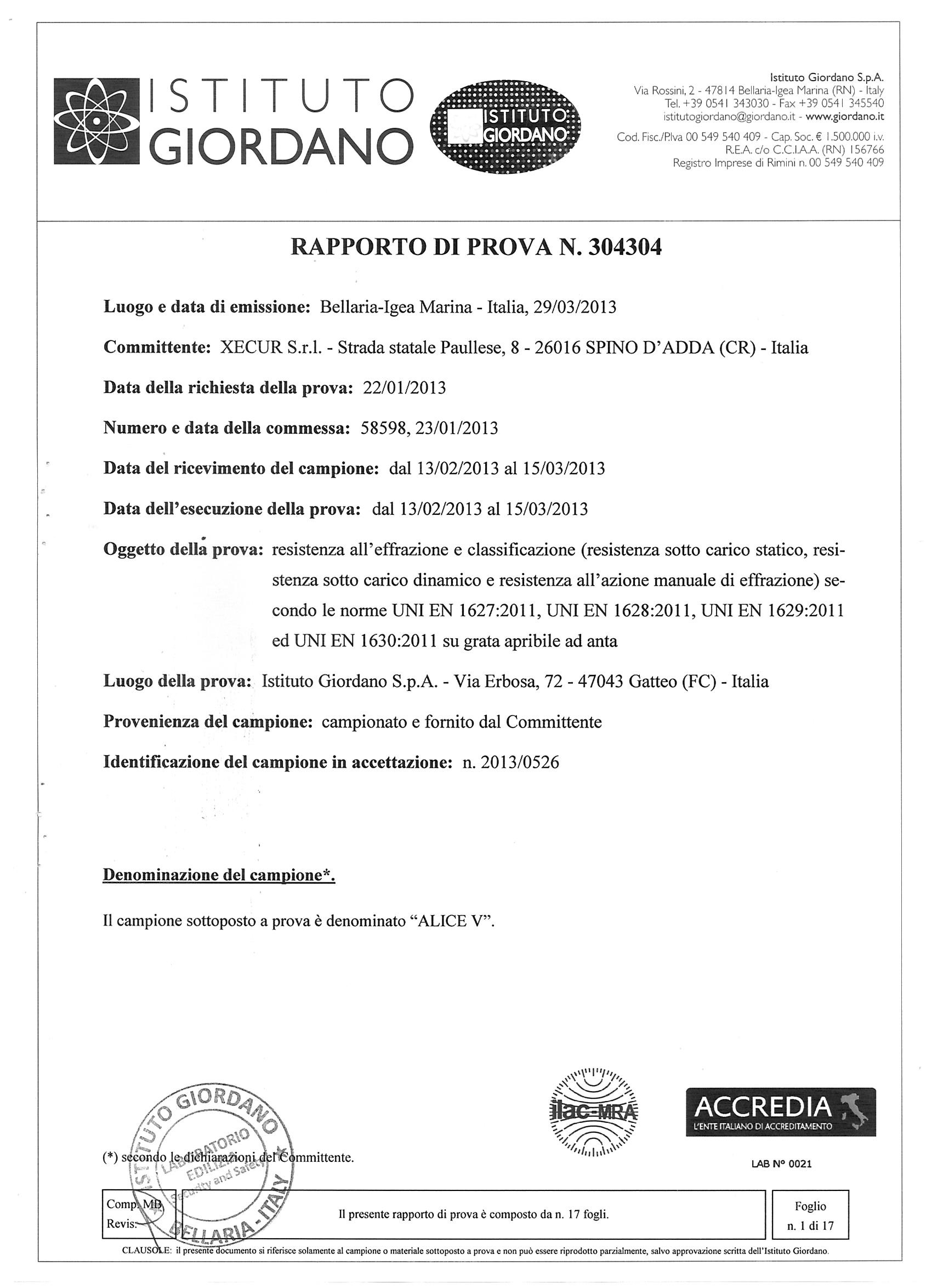Scarica il rapporto di prova pag.1