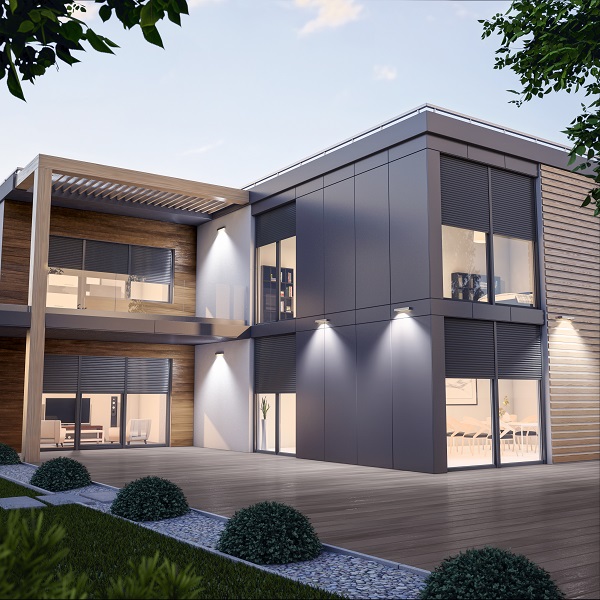 Villa con avvolgibili in PVC integrati alle finestre
