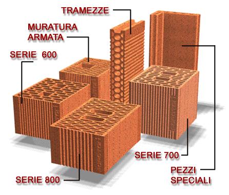 I prodotti POROTON® si suddividono inoltre, in funzione della percentuale di foratura e della conformazione geometrica, nelle seguenti serie: