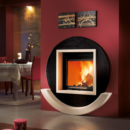 Serie di caminetti monoblocco, disponibili con vari rivestimenti