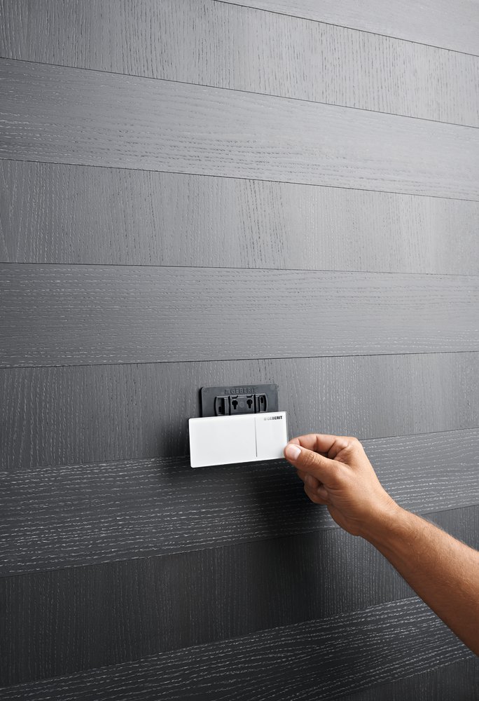 Le placche di comando Geberit, disponibili in diversi colori e materiali, possono essere ispezionate in qualsiasi momento, comodamente e senza attrezzi.