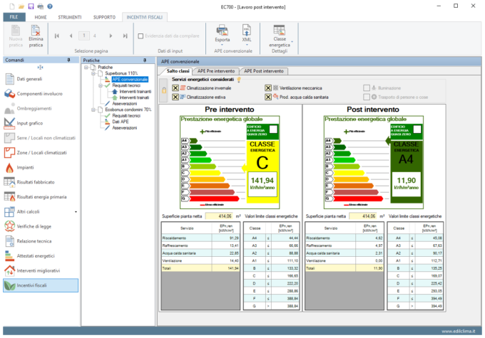 • esportare il file XML dell’APE convenzionale pre e post intervento da caricare sul portale ENEA;