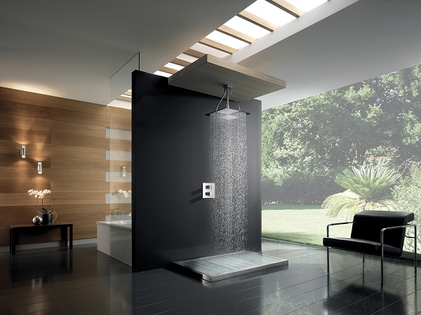 Galileo è un soffione quadrato con installazione a soffitto realizzato proprio con questo materiale ed offre il comfort di quattro soffioni uniti insieme.