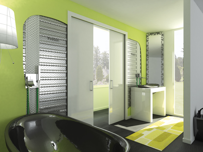 Permette lo scorrimento al suo interno di uno o due pannelli porta standard in legno o vetro.