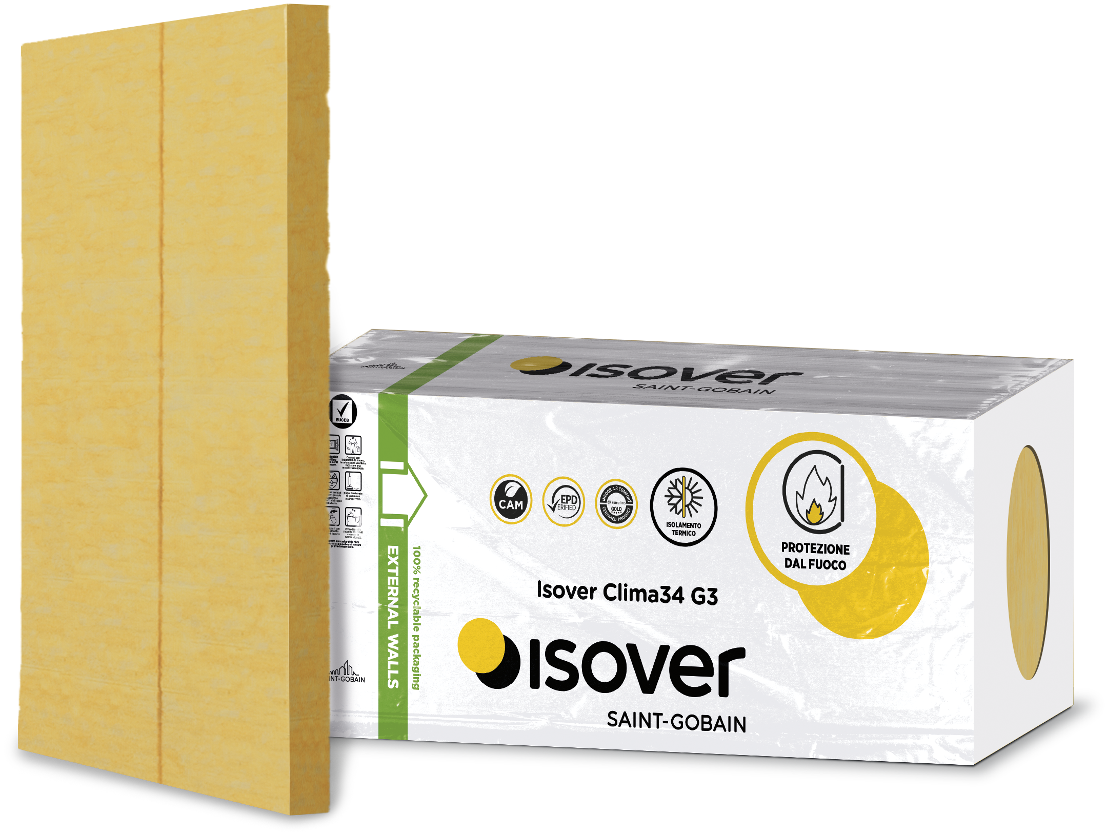 Saint-Gobain Italia Isover PAR 4+: pannello idrorepellente in lana di vetro Pannello isolante per pareti in gesso rivestito e contropareti