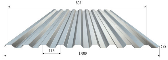 Alubel 28 è un sistema integrale in lastre metalliche grecate per coperture di edifici con pendenza minima del 7%.