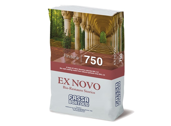 Si tratta di un bio-intonaco di finitura a base di calce idraulica naturale NHL 3,5 traspirante, usato come intonaco di finitura ad effetto marmorino per interni ed esterni. Può essere usato come intonaco di finitura a completamento di cicli di risanamento di murature soggette ad umidità di risalita realizzati con intonaci macroporosi, come nel ciclo della linea EX NOVO costituito da RINZAFFO 720, INTONACO MACROPOROSO 717 e FINITURA 750.
