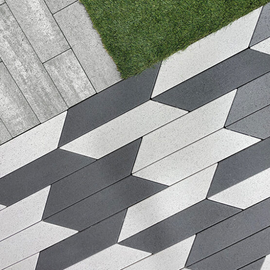 Matita è la pavimentazione tessile composta da due masselli autobloccanti speculari con modulo 50x20x8cm. Un formato semplice, quello del parallelogramma, ma estremamente versatile.