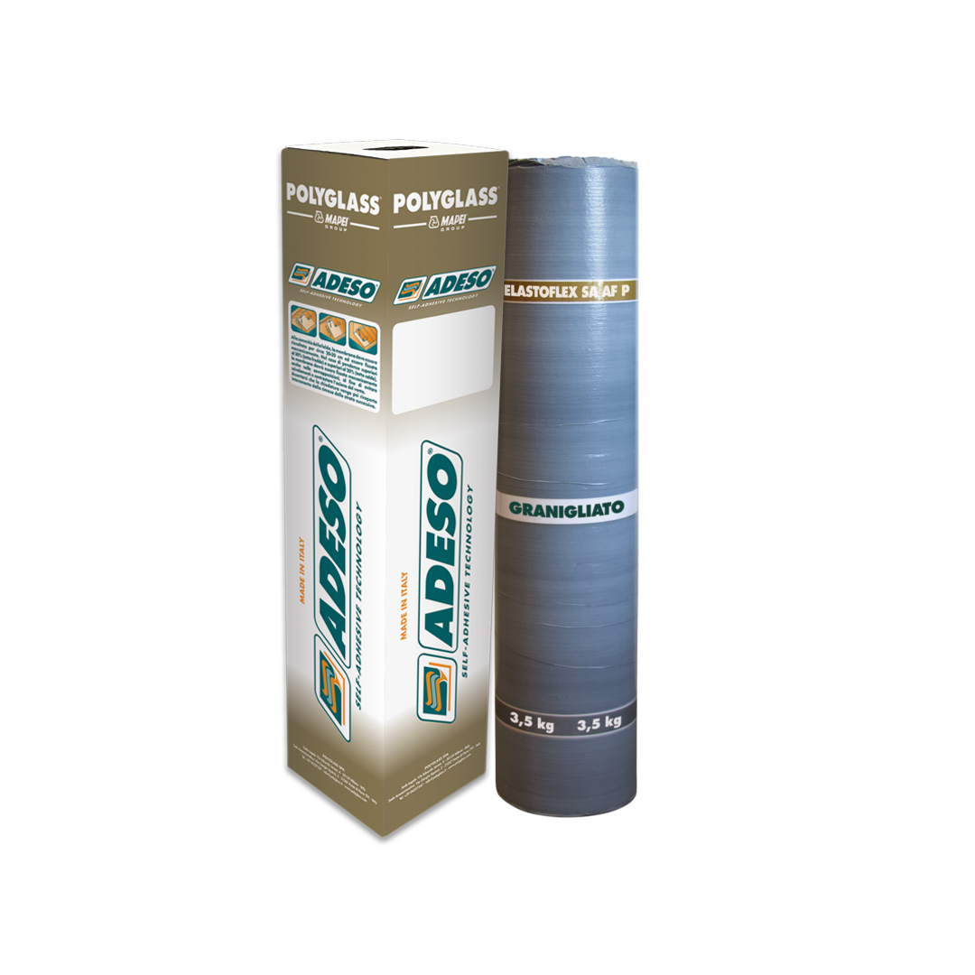 ELASTOFLEX SA P AF sono membrane bituminose prefabbricate autoadesive di ottima qualità, realizzate con tecnologia ADESO®, il nuovo sistema di stratificazione del compound messo a punto da Polyglass S.p.A.