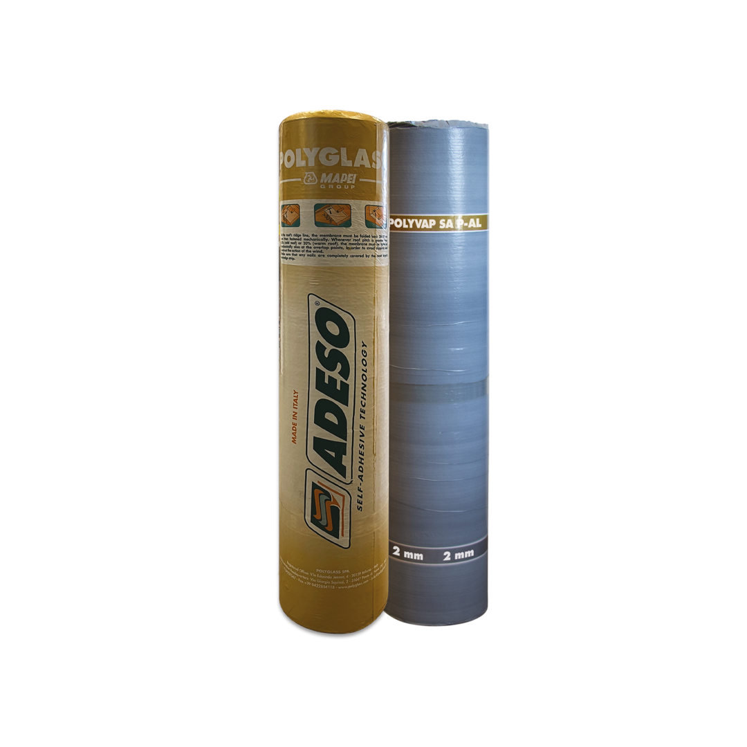 POLYVAP SA è realizzata da uno speciale compound elastomerico (SBS) autoadesivo ed è armata con un film di alluminio.