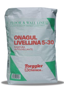 ONAGUL LIVELLINA 5-30 è una malta cementizia autolivellante pronta all’uso, di colore grigio, a base di una miscela di cementi speciali a rapido indurimento, inerti selezionati, resine sintetiche e additivi specifici. Dopo miscelazione con acqua si ottiene un impasto di ottima lavorabilità, fluido e autolivellante, esente da sedimentazione e affioramenti superficiali, facilmente applicabile a spatola in spessori da 5 mm fino a 30 mm, con ottima adesione al sottofondo. Una volta indurito ha caratteristiche di buona resistenza meccanica, all’urto e all’abrasione, con una superficie liscia ed antipolvere. È totalmente priva di additivi fluidificanti a base di sostanze proteiche e di sostanze che liberano formaldeide e ammoniaca. L’impiego di particolari polimeri consente di ottenere una bassissima emissione di sostanze organiche volatili. ONAGUL LIVELLINA 5-30 rientra nella classe CT-C30-F7 secondo UNI EN 13813.