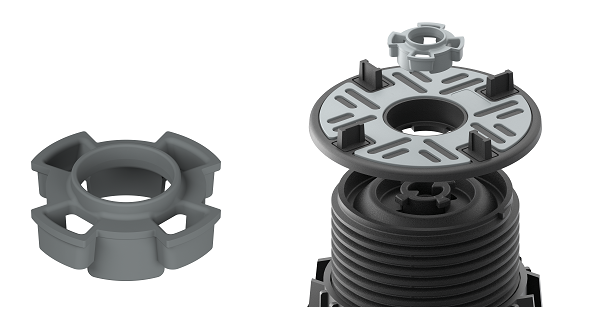 Impertek Pedestal Line: supporto MegaMart S per pavimentazioni flottanti Realizzazione di pavimentazione sopraelevata mista esterna