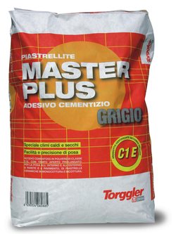 PIASTRELLITE MASTER PLUS è un adesivo cementizio in polvere disponibile nei colori grigio e bianco, a base di cementi ad alta resistenza, inerti selezionati, resine sintetiche ed additivi specifici. Una volta mescolato con acqua si ottiene una colla di ottima lavorabilità, buona tixotropia ed elevata adesività su tutti i tipi di sottofondo cementizio. Applicato in verticale non cola e non lascia scivolare le piastrelle. E’ resistente ai cicli di gelo e disgelo. PIASTRELLITE MASTER PLUS è classificato come adesivo cementizio di classe C1E secondo le normative UNI EN 12004. Se invece che con acqua viene impastato con ANTOL FLEX diluito 1:1 è classificato come adesivo cementizio di classe C2E secondo le normative UNI EN 12004 e di classe S1 secondo le normative UNI EN 12002. Se invece che con acqua viene impastato con ANTOL FLEX puro è classificato come adesivo cementizio di classe C2E secondo le normative UNI EN 12004 e di classe S2 secondo le normative UNI EN 12002.