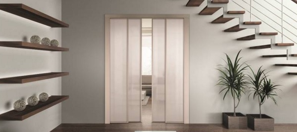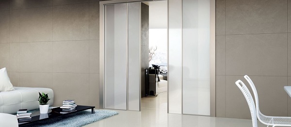 Tale linea si distingue per la peculiarità del movimento dei pannelli porta: “telescopico” con parte del pannello che scorre dentro l’altro e insieme nel controtelaio, in una porzione di muro pari alla metà della luce di passaggio.