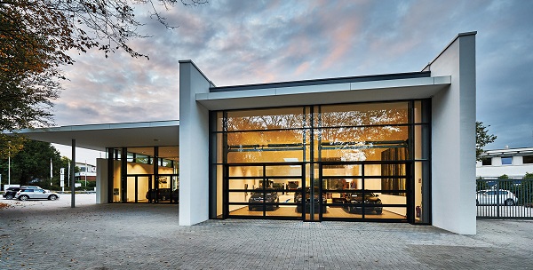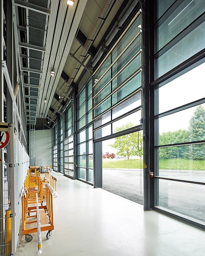 ALR F42 Glazing unisce tecnologia e design, è dotata di protezione salvadita Hörmann ed è disponibile in dimensioni fino a 5500 x 4000 mm.