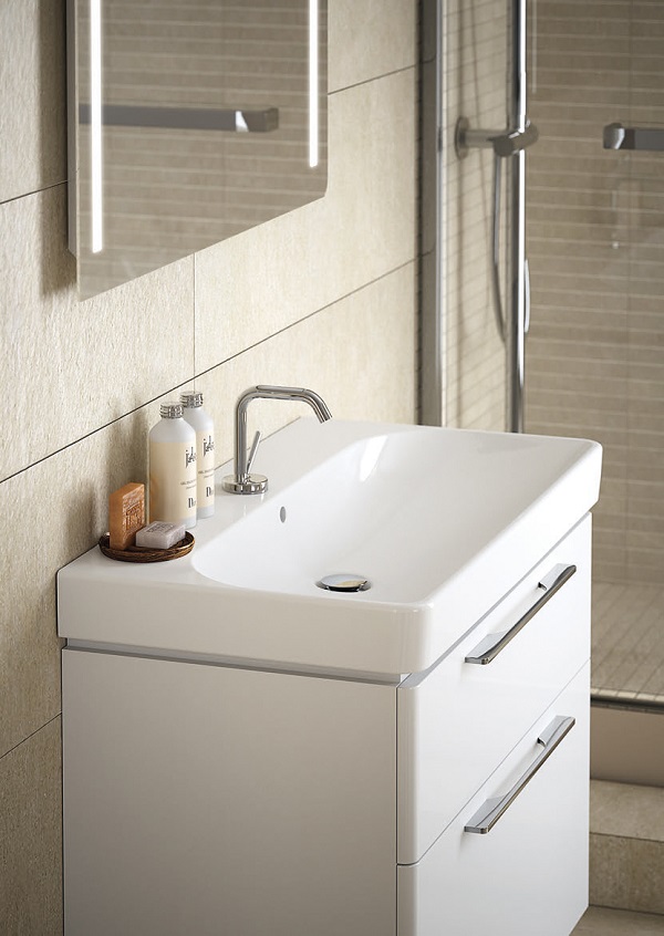Il suo design allo stesso tempo razionale ed essenziale  si unisce alle diverse soluzioni di lavabi, dalle forme morbide o più geometriche, che permette di arredare l’ambiente bagno con grande versatilità.