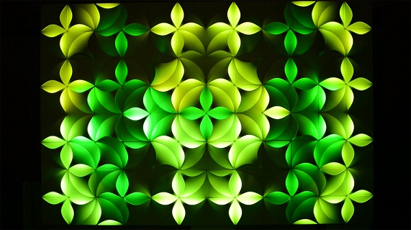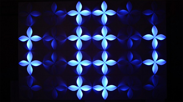 Il sistema componibile Moonflower, in materiale termoplastico stampato a iniezione, riprende il fascino delle antiche vetrate gotiche, volto a ridefinire gli spazi in composizioni di luce e fantasia senza limiti. Moonflower, frutto dell’inventiva del designer ceramista inglese Colin Johnson, è pensato per riflettere la luce emessa dalla sorgente di una singola unità nella struttura, arrotondata e sinuosa, dell’unità adiacente, intrattenendo visivamente con suggestivi giochi bicolore. Tanti frammenti di luce, abbracciati l’uno all’altro, arricchiscono di forme plastiche la parete che lo ospita. In ogni piastrella modulare batte un “cuore” luminoso compatto: un gruppo ottico che racchiude le qualità illuminotecniche dei migliori diodi LED RGB integrati in un circuito realizzato su misura. Il “cervello” è un driver con ben 21 programmi preimpostati, con la possibilità di  ottenere effetti cromatici statici e dinamici: tante combinazioni altamente scenografiche ed evocative. Su richiesta, è possibile personalizzare Moonflower tramite protocollo DMX.
