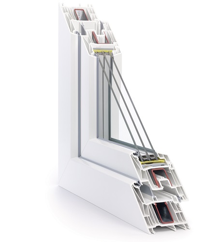 Il profilo in PVC Synego è rinforzato con l’aggiunta di acciaio, è profondo 80 mm e costituito da 7 camere, inoltre è compatibile con profili REHAU complementari e rinforzi già esistenti.