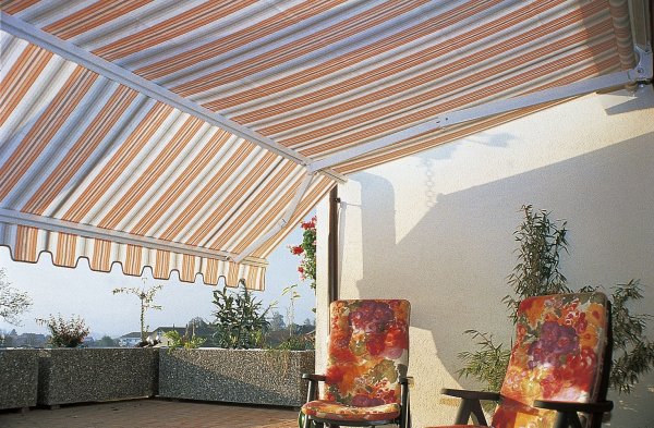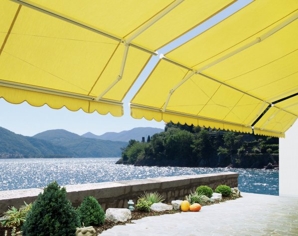 Nel caso di montaggi a parete più esposti, l’elegante tettuccio protettivo, disponibile come optional, garantisce una buona longevità alla tenda da sole.