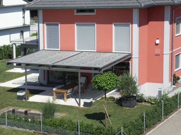 Il meccanismo con molle a gas brevettato ed integrato nelle guide laterali, assicura la massima tensione del telo in qualsiasi posizione. Le diverse piastre di fissaggio consentono un montaggio flessibile e semplice, anche in caso di sottostrutture complesse.