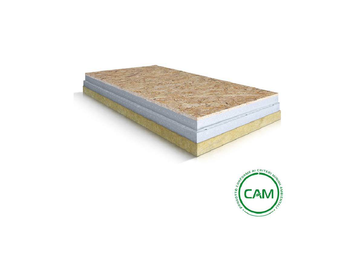 TOP-LAYER G ROCK ECO sono pannelli termoisolanti in polistirene espanso sinterizzato a celle chiuse, realizzati con materia prima Neopor® di BASF, con reazione al fuoco in Euroclasse E, conformi alla norma UNI EN 13163 e marcati CE. I pannelli sono accoppiati all’estradosso con un pannello in OSB/3 e all’intradosso con un pannello in lana di roccia, al fine di migliorare lo sfasamento termico.