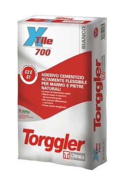 X-TILE 700 è un adesivo cementizio in polvere di colore bianco, a base di una miscela di leganti idraulici speciali ad alta resistenza e rapida presa e indurimento, inerti selezionati, un’elevata percentuale di resine sintetiche ed additivi specifici, appositamente formulato per l’incollaggio di marmo, pietre naturali e artificiali, marmette di resina e materiali ricomposti. Una volta mescolato con acqua si ottiene una colla di ottima lavorabilità, elevata flessibilità ed eccellente adesività su tutti i tipi di sottofondo, anche su vecchi pavimenti e rivestimenti ceramici o in pietra naturale. La presa rapida e soprattutto la rapida idratazione evita la formazione di alonature sulla superficie di lastre e piastrelle di marmo o pietre naturali sensibili all’acqua, e consentono una veloce messa in esercizio dei pavimenti posati. Il rapido sviluppo delle resistenze meccaniche iniziali garantisce infatti, in condizioni normali di indurimento, la pedonabilità dopo circa 4 ore dall’incollaggio. Il tempo aperto prolungato permette la posa sicura anche in climi caldi e ventilati. L’elevata deformabilità dell’adesivo indurito permette l’assorbimento dei movimenti del sottofondo, per cui può essere impiegato anche per l’incollaggio di pavimenti sottoposti a forti sollecitazioni. È resistente ai cicli di gelo e disgelo.