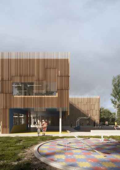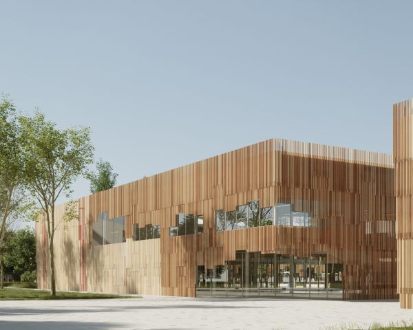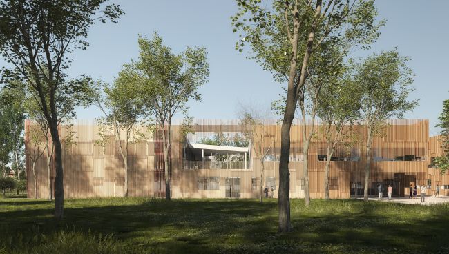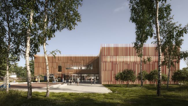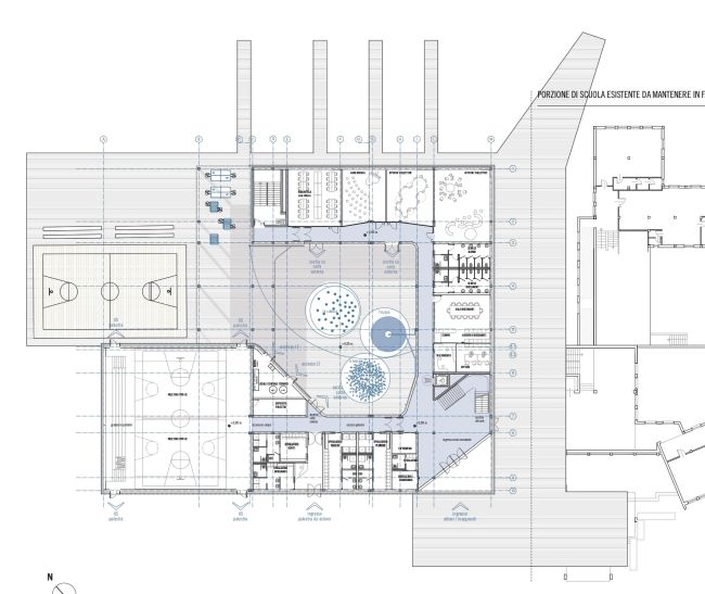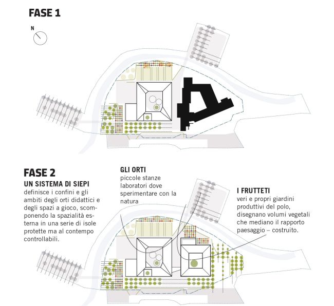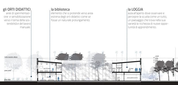 Un polo scolastico realizzato in due fasi punta su verde, spazi collettivi, corti interne e zone porticate. Un edificio bivalente, utilizzabile in orari e per parti differenti, con spazi didattici flessibili, adattabili secondo le esigenze. Un guscio esterno in legno avvolge e protegge le facciate dei fabbricati a cura di Pietro Mezzi Indice degli argomenti: I temi del progetto I riferimenti dimensionali e spaziali del progetto L’edificio come sistema cronotopico La logica prestazionale I materiali e le fonti energetiche La struttura dell’edificio Atelier(s) Alfonso Femia ha vinto il concorso indetto dal comune di Legnago per la progettazione dell’intervento di rigenerazione e potenziamento del complesso scolastico di via Ragazzi del ’99 nel quartiere di Porto di Legnago. Il progetto riguarda la prima fase di riqualificazione del complesso, consistente nella demolizione e ricostruzione della scuola secondaria di primo grado “G.B. Cavalcaselle”. La nuova scuola ospiterà 225 alunni suddivisi in nove classi e una palestra, aperta anche alla comunità locale. Il progetto integra l’intervento di ridisegno dell’area verde circostante, inserita nel corridoio ecologico del vicino canale Terrazzo. I temi del progetto Per Femia lo spazio collettivo è il primo tema importante del progetto, che proprio per questo propone come suo atto fondativo la realizzazione di un filtro verde capace di mettere ordine e di costruire un colonnato naturale: un volume verde che anticipa e costruisce il nuovo plesso scolastico. Nelle intenzioni dei progettisti gli edifici della scuola si aprono verso il territorio e si sviluppano attorno a un’idea di corte aperta «per creare un sistema intimo e funzionale, una pausa tra natura e cielo, uno sguardo tra i momenti di pausa e quelli delle attività». Le fasi del progetto (©Atelier(s) Alfonso Femia *AF517) Operativamente tre sono le fasi del programmala zero, che si riferisce al trasferimento della scuola secondaria; la uno che riguarda la costruzione della nuova scuola secondaria; la due che interesserà il completamento del plesso scolastico. I riferimenti dimensionali e spaziali del progetto I dati dimensionali e spaziali hanno rappresentato un altro punto cardine del lavoro dell’Atelier(s) Alfonso Femia attraverso i quali è stato possibile definire lo spazio in cui si inserirà la scuola: le distanze dal confine e dall’edificio scolastico esistente e l’allineamento della facciata. Piano terra (©Atelier(s) Alfonso Femia *AF517) Gli spazi che circondano la scuola creano un sistema di piazze e di aree verdi sportive che si incastrano, si sovrappongono e formano un sistema sinergico di tre elementi fondamentali: l’acqua, la materia e il paesaggio. Render della scuola di Legnago (©Atelier(s) Alfonso Femia *AF517 & Diorama) Per il sistema del verde il progetto prevede la realizzazione di un parco-filtro con lo scopo di creare un sistema naturale in grado di ospitare le viabilità di accesso e il sistema di piste ciclabili. È prevista la definizione di una piazza lineare: una terra di mezzo tra i due edifici, una linea di demarcazione spessa, destinata a dilatarsi in una piazza lineare con la futura realizzazione della scuola primaria. La piastra centrale, con la sua geometria netta, marca la transizione tra l’età dell’infanzia e quella dell’adolescenza, ma si copre di una superficie solida che invita a essere percorsa e attraversata. Primo piano (©Atelier(s) Alfonso Femia *AF517) Sul versante nord ovest, il nuovo edificio si apre al paesaggio con corti e portici, secondo una grammatica di contrappunto tra il naturale e l’antropizzato, che sarà portata alla sua massima espressione con il completamento dell’intervento e la realizzazione del secondo blocco scolastico. L’edificio come sistema cronotopico L’edifico sarà bivalente, un sistema cronotopico che nell’arco della giornata potrà essere utilizzato in diverse aree e orari secondo gli eventi e le necessità. La palestra – polo sud-ovest dell’edifico – si accende quando il resto della scuola è in modalità off, si duplica con la piazza dello sport esterna e si integra con il parco e con lo spazio più intimo della corte. Sezione longitudinale (©Atelier(s) Alfonso Femia *AF517) Le aule possono avere una diversa configurazione, assemblandosi in spazi maggiori e variando la loro configurazione interna secondo le necessità didattiche: possono così adattarsi a gruppi più o meno numerosi e sono separate da pareti mobili altamente insonorizzanti che, una volta aperte, consentono di raddoppiare lo spazio didattico accorpando le aule contigue. Sezione trasversale (©Atelier(s) Alfonso Femia *AF517) Il circuito distributivo interno a forma di anello si apre ai vertici con cannocchiali visuali sul parco e si dilata in una grande loggia scoperta al piano primo: una pausa verde tra le aule, gli ambienti didattici speciali e quelli sportivi. La loggia è un’aula all’aperto, dove osservare dall’alto i movimenti all’interno della palestra. La logica prestazionale Il dimensionamento degli ambienti della nuova scuola è sviluppato secondo una logica prestazionale, che cerca una spazialità flessibile e adatta alle esigenze di una didattica evoluta. In questo senso, sono le linee guida ministeriali a orientare l’individuazione delle macro-aree funzionali, conformando il layout in sottoinsiemi chiaramente identificabili ma fluidamente connessi: l’aula, lo spazio di gruppo, i laboratori, lo spazio individuale e quello informale e di relax sono concetti pedagogici che si materializzano in altrettante parti della nuova scuola. Il sistema del verde (©Atelier(s) Alfonso Femia *AF517) La palestra si protende verso l’esterno sulla piazza dello sport diventando un vero e proprio nuovo nucleo sportivo, che funziona indipendentemente dall’attività scolastica. La corte interna è invece uno spazio più intimo, che diventa un’isola digitale con panche hi-tech e wireless