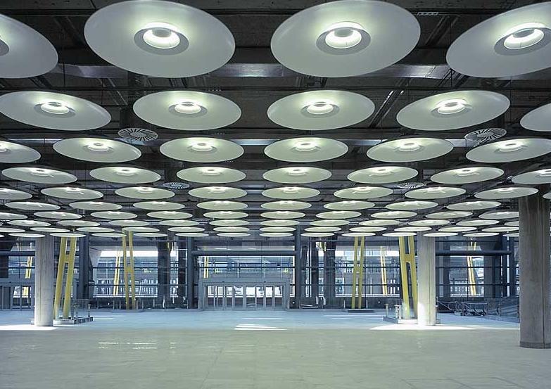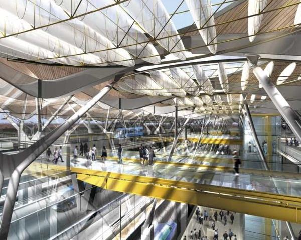 Il progetto per il terminal 4 a Barajas è stato vinto attraverso un concorso internazionale da Richard Rogers in Partnership con lo studio spagnolo Estudio Lamela e due società di ingegneria TPS (UK) e Initec. Il committente, Airports Authority (AENA), ha commissionato agli architetti di progettare una nuova struttura come espansione dell’attuale aeroporto Barajas di Madrid, che era stato inaugurato nel 1933. Il nuovo terminal porta Madrid ad essere un grande hub europeo, e consolida la sua posizione di collegamento focale tra Europa e America Latina. I componenti principali del progetto includono un vasto parcheggio, un terminal ed una struttura satellite per un totale di circa un milione di metri quadrati e in grado di gestire 35 milioni di passeggeri l’anno. Al team di progettazione è stato anche richiesto di integrare il tutto con innovativi sistemi di movimentazione bagagli e utenti, e di collegare il terminal con il satellite, anche con un treno e una metropolitana. Sviluppare alcune delle idee emerse durante il lavoro sul Terminal 5 di Heathrow a Londra, è stato un utile modello di leggibilità, avendo uno schema semplice e lineare, una chiara progressione di spazi per i passeggeri in arrivo e in partenza. La struttura è distribuita su sei piani, tre fuori terra per il check-in, di sicurezza, imbarco e riconsegna bagagli, e tre piani interrati per la manutenzione, la lavorazione dei bagagli e passeggeri in trasferimento tra gli edifici. I livelli più bassi del palazzo sono realizzati in cemento, in contrasto con la trasparenza sorprendentemente leggera delle aree destinate ai passeggeri. L’edificio è coperto da un tetto ‘a onda’ supportato centralmente da pilastri, e punteggiato da lucernari che forniscono luce naturale in tutta la parte superiore (partenze). Data la sezione multi-livello, una strategia particolare è stata adottata anche per portare la luce naturale verso il basso. La soluzione è una serie canali di luce che separano, a fette parallele gli spazi, e che indicano le varie fasi di transito, dal punto di arrivo, al check-in, di sicurezza e di controllo dei passaporti, alle sale di partenza e finalmente il aircraft. Questi “canyon” sono spettacolari spazi a tutta altezza, attraversati da ponti di arrivo e partenza dei passeggeri, cosichè, anche se separati, possono condividere lo spazio imponente. I canyon fungono anche da indicatori di posizione, sottolineando il chiaro senso di direzione e leggibilità, che è fondamentale per un aeroporto. Nonostante il caldo estremo dell’estate a Madrid, il team di progettazione è riuscito a massimizzare al contempo la trasparenza e la vista verso l’aereo e le montagne. I benefici dettati da un orientamento nord-sud, con le facciate principali esposti a est e ovest – hanno permesso una protezione dell’edificio contro il sole. Le facciate sono protette da una combinazione di sporgenze del tetto che creano una naturale ombreggiatura esterna. Il terminal è composto da un piano seminterrato, che scende a ben 20 metri sotto terra; una struttura a tre piani fuori terra in cemento, acciaio e il tetto a graticcio. La parte più imponente è stata gettata in opera, anche se particolare attenzione è stata focalizzata sui settori in cui il calcestruzzo è visibile, come ad esempio le strisce di bordo per le strisce di luce. Il concept Il concept del nuovo aeroporto si basa sulla ripetizione di uno stesso modulo strutturale secondo una sequenza lineare longitudinale sull’asse nord-sud o trasversale sull’asse est-ovest. Ogni modulo è formato da un pilastro d’acciaio a Y inclinato verso l’alto, con base in cemento armato a faccia vista, che sorregge una copertura ondulata forata al centro da un lucernaio. L’accostamento di più moduli secondo l’asse longitudinale dà luogo a blocchi lineari che organizzano le differenti funzioni aeroportuali e che vengono separati gli uni dagli altri da quelli che i progettisti definiscono light filled canyons. Questi canyons portano la luce naturale all’interno dei sei piani dell’edificio e incorporano il paesaggio circostante nello spazio aeroportuale. In sezione il terminal è organizzato su sei piani, tre fuori terra e tre interrati, mentre in pianta è composto dall’accostamento di 4 blocchi longitudinali. Per scaricare gli schizzi prospettici clicca qui clicca qui Per scaricare la pianta clicca qui Per scaricare la sezione clicca qui Per scaricare il modellino clicca qui Consiglia questo progetto ai tuoi amici Commenta questo progetto