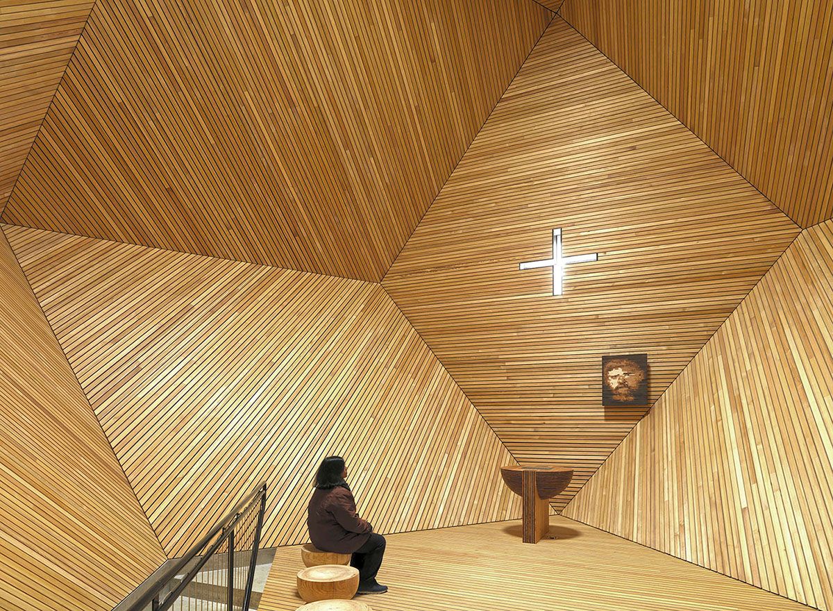 Dalla pietra delle montagne austriache, e grazie alla visione dell’architetto svizzero Mario Botta, a duemila metri di altitudine, ha origine la cappella Granato, piccolo manufatto dalla forma dodecaedrica A cura di: Arch. Emanuele Meloni La chiesa di Santa Maria degli Angeli costruita sul principio degli anni 90, a oltre 1.500 metri di altezza, sul monte Tamaro, nella Svizzera italiana del Canton Ticino, ha fatto scuola. Questa volta Mario Botta si spinge un pò più in là, nelle montagne austriche, mantenendo però intatto lo spirito che aveva contraddistinto quel primo progetto montano. La Cappella Granato (Garnet Chapel), infatti, s’erge sulla sommità d’un monte che s’affaccia a picco sulla Zillertal – la valle sottostante a pochi km da Innsbruck solcata dal fiume Ziller da cui ne prende il nome – ed è immersa in un tripudio di montagne ch’empiono lo sguardo all’orizzonte in ogni direzione fino a perdersi in lontananza dileguandosi col cielo. Anche stavolta l’architetto svizzero ricorre alla pietra locale – il Granato, appunto, che dà il nome all’opera – quale elemento costruttivo e distintivo, ponte tra natura e artificio, montagna e chiesa, atto sacro del costruire. Botta conferma ancora una volta la sua predilezione per le forme primitive, semplici, custodi di un ordine sacro del costruire. La sacralità rappresenta infatti per Botta una condizione intrinseca dell’architettura. Egli afferma infatti che “Costruire è di per sé un atto sacro, è un’azione che trasforma una condizione di natura in una condizione di cultura; la storia dell’architettura è la storia di queste trasformazioni”. Indice degli argomenti Toggle Il Granato e la semplicità del prismaArcaico gioiello custodito dai montiLegno, acciaio e prefabbricazioneMateriali: dissonanti affinità, tra interno ed esternoScheda Progetto Il Granato e la semplicità del prisma La cappella deve il suo nome alla particolare pietra naturale – il granato – che in natura ha una struttura dodecaedrica. Botta parte da qui, da questa intuizione, lasciando che sia il materiale della montagna ad evocarne la forma e produce una grande quantità di schizzi progettuali. Mario Botta, Cappella Granato: schizzi progettuali La forma cristallina dell’edificio, seguendo quindi questo principio è un poliedro del tipo dodecaedro rombico, un granato tagliato con dodici superfici romboidali. Il solido poggia su di un piccolo podio realizzato in cemento dalla forma regolare, un cubo schiacciato che funge da basamento. Mario Botta, Cappella Granato: veduta, piante e sezione Il risultato formale racchiude nella semplicità estetica – che evoca forme primitive ed essenziali – quella sacralità che per Botta è una qualità intrinseca dell’atto del costruire, dell’architettura. Arcaico gioiello custodito dai monti Primordiale cimelio incastonato tra i monti, cristallo generato dalla natura e custodito dagli uomini sulla vetta più alta a indicarne la cima, come una sacra bandiera volta al vento devota al cospetto della natura. Non è insolito, infatti, che il punto più alto di una montagna qualsiasi, sia commemorato da una croce, testimone della divina sommità, ponte tra cielo e terra, spirito e materia. L’architetto ticinese Mario Botta è a casa sua. Nonostante la distanza dalla sua terra natìa – la Svizzera – egli ritrova qui a Zillertal in Austria, paesaggi a lui molto familiari, che fanno breccia come possenti echi nella sua memoria. Mario Botta, Cappella Granato: site plan, Zillertal, Austria Montagne smisurate invadono lo sguardo in ogni direzione fino a perdersi all’orizzonte, evocando potenti affinità con le sonorità visive dello svizzero Monte Tamaro, dove qualche decennio prima egli collocò una cappella in memoria della moglie scomparsa del suo cliente. Qui in Austria, a duemila metri di altitudine e affacciata su un piccolo lago d’alta quota, sorge invece la piccola chiesa che prende il nome dalla pietra di cui la montagna è composta, il Granato appunto. Legno, acciaio e prefabbricazione La struttura in legno della cappella dalla curiosa forma è abilmente celata all’interno dell’edificio. Una strategia progettuale che dimostra la familiarità dell’architetto con questo materiale. Il legno, infatti, si sa teme l’umidità, in particolare i ristagni d’acqua e le esposizioni prolungate alle intemperie. È vero che esistono delle specie legnose più resistenti di altre e dei trattamenti (shou sugi ban, acetilazione, trattamento termico…) che ne consentono di aumentarne la durabilità, ma va sottolineato che senza particolari accorgimenti in fase di progettazione (regola delle 4D), il legno andrà presto incontro a deterioramento e marcescenza. Mario Botta, Cappella Granato: dettagli costruttivi della finestra a croce Oltretutto l’edificio è poggiato su un basamento in calcestruzzo che, oltre a conferire l’idea di un piedistallo dove la “gemma” va a poggiarsi e slanciarsi con maggior vigore verso il paesaggio, consente alla struttura in legno quello stacco dal terreno e dall’umidità che gli allunga la vita. Mario Botta, Cappella Granato: dettagli costruttivi del lucernario circolare La scelta di una struttura a secco, come per i rifugi alpini, ha permesso di costruire rapidamente l’edificio, andando ad assemblare i pannelli prefabbricati con l’ausilio di una gru, cosa non secondaria alle altitudini aspre nelle quali si è operato. Ed il legno ha giocato un ruolo fondamentale. All’esterno lastre di acciaio corten garantiscono l’idonea protezione e la lunga durata del manufatto. Mario Botta, Cappella Granato: fasi costruttive di montaggio dei pannelli La Cappella Granato è composta da dodici elementi romboidali in legno lamellare incrociato o xlam (spessore 120 mm), successivamente protette con la giustapposizione di una membrana impermeabilizzante. A questi pannelli sono state poste 2.280 barre filettate per accogliere e fissare la facciata in acc