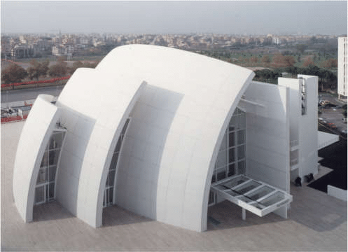 Nel quartiere romano di Tor Tre Teste è stata consacrata la Chiesa Dives in Misericordia, realizzata dall’architetto americano Richard Meier, vincitore del concorso internazionale indetto dal Vicariato di Roma. In una zona connotata da edifici di edilizia popolare, priva di punti focali, di spazi dedicati alla socialità, la chiesa s’impone con l’altezza delle sue vele (26 metri la maggiore) e il bianco assoluto delle superfici murarie.Per evitare l’utilizzo di un’ossatura d’acciaio rivestita da pannelli di tamponamento bianchi, soluzione non durevole nel tempo, le vele autoportanti sono state suddivise in grandi pannelli prefabbricati a doppia curvatura, i “conci”, ciascuno del peso di 12 tonnellate. Il giunto esistente tra un pannello e l’altro è stato ideato e disegnato in modo da permettere la giunzione fra le barre di precompressione ed assorbire, assicurando la continuità statica alla struttura, le inevitabili tolleranze dimensionali, proprie del processo di prefabbricazione. Ogni elemento doveva essere accostato ad altri, con la precisione richiesta dal rispetto della geometria della vela e con precisione assoluta, esser movimentato per permettere l’interconnessione delle barre, tornare alla posizione ideale e rimanere immobile durante le prime fasi di realizzazione del giunto, in una porzione di spazio predeterminato.Tutto ciò senza che sulla verticale del suo baricentro potesse essere agganciato un qualsiasi mezzo di sollevamento o di sostegno. Non è stato possibile individuare una soluzione che risolvesse questo problema, utilizzando ponteggi o mezzi di sollevamento tradizionali. Si è riusciti a risolvere il problema grazie all’ideazione di una speciale macchina alta 32 metri. Questa permetteva di imprimere al prefabbricato, una volta fissato, i tre spostamenti nella direzione dei tre assi ideali X,Y,Z e le tre rotazioni attorno agli stessi in modo da dare le sei movimentazioni che permettono ad un solido di raggiungere qualsiasi posizione nello spazio. Una macchina originale e complessa che, pur sfruttando tutte le possibilità della moderna tecnologia, riporta alla memoria le macchine ideate per costruire le antiche cattedrali. Bianco TX Millennium, il cemento brevettato per il progetto Per rispondere alla qualità estetica (e non solo) voluta da Meier, Italcementi ha creato e brevettato un nuovo tipo di cemento: il Bianco TX Millennium. Oltre ad un’altissima resistenza e alla maggior lavorabilità, offre una caratteristica sorprendente; grazie alla presenza di particelle di fotocatalizzatori, la superficie di cemento sotto l’effetto della luce si autopulisce, eliminando depositi organici. Questo favorisce il mantenimento dell’aspetto estetico originario e aumenta la durata del manufatto. Le vele di Dives in Misericordia in numeri Nella costruzione della vela realizzata con 256 elementi prefabbricati, detti conci, sono stati impiegati: 2.600 tonnellate di inerti ricavati dalla macinazione del marmo bianco di Carrara 600 tonellate di cemento bianco TX Millennium (addittivato con biossido di titanio) prodotto dalla cementeria Italcementi di Rezzato (Bs) 550 tonnellate di malte speciali per la realizzazione dei giunti strutturali fra gli elementi prefabbricati e l’iniezione delle guaine dei cavi e delle barre postese 8 chilometri di cavi d’acciaio di postensione 7,5 chilometri di barre d’acciaio di postensione 300 tavole progettuali necessarie per la complessità strutturale e per la grande varietà della geometria dei conci e dei loro dettagli costruttivi. 12.000 ore di studi e ricerche per la messa a punto del cemento TX Millennium 23.000 ore di progettazione per passare dalla fase progettuale alla fase realizzativa A testimonianza della complessità della realizzazione e delle soluzioni innovative adottate, oltre 7.000 tra ingegneri e architetti hanno visitato il cantiere durante le diverse fasi della costruzione. Consiglia questo progetto ai tuoi amici Commenta questo progetto