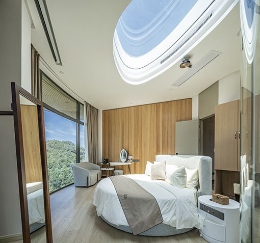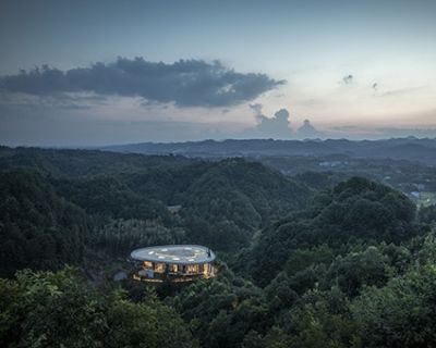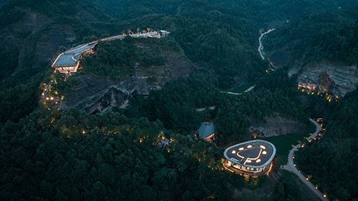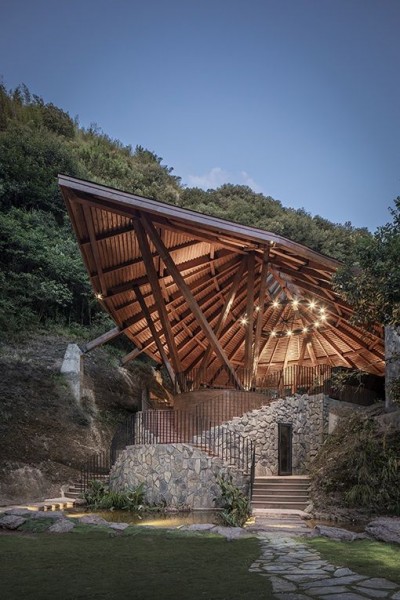 Situato nella provincia cinese di Hunan in Cina, l’Eagle Rock Cliffs è un hotel arroccato in cima ad una montagna, immerso nella natura e con una vista mozzafiato su fiumi, montagne e foreste di bambù. Architettura integrata con l’ambiente circostante e design lineare risaltano il rapporto tra uomo natura a cura di Tommaso Tautonico Rielaborare il rapporto tra architettura e topografia naturale in un contesto ambientale unico, tra le montagne, circondato da immense foreste e dal fiume Miluo. È l’obiettivo dello studio di architettura Duoxiangjie architectural design con sede a Pechino. Pingyan Eagle Rock Cliff, questo il nome del suggestivo hotel in cima alla montagna, è la terza fase del più ampio progetto architettonico “Pingyan homey wild luxury hotel”. L’hotel è composto da tre strutture distinte, situate a diverse altezze: il Dinghui, l’edificio più grande, si trova sulla cima della montagna; lo Yanshang, una struttura dalla forma ovale dedicata alle camere d’albergo e lo Ziyahui, una struttura pensata per ospitare matrimoni, piccoli spettacoli ed eventi. “A causa della suo posizione, unica nel suo genere, l’edificio è stato realizzato seguendo l’andamento dell’ambiente circostante. Ogni dettaglio è stato progettato rispettando gli spazi naturali e prestando attenzione a massimizzare la luce del giorno in ogni ora” dichiarano gli architetti. Eagle Rock Cliff: vista mozzafiato sull’ambiente circostante L’edificio principale, Dinghui, è sviluppato in lunghezza. Per mantenere inalterato il profilo naturale, il team di progettazione ha definito un piano orizzontale in corrispondenza del punto più alto della cresta, che servirà da tetto, in modo che la parte restante dell’edificio possa svilupparsi verso il basso. Il Dinghui ospita lussuose suite e zone relax, una SPA, uno spogliatoio e una sala da tè che affacciano sulle foreste di bambù circostanti. Un corridoio leggermente curvo collega le stanze alla piscina a sfioro all’aperto sul lato ovest. I lati nord e sud dell’edificio, grazie ad una abbondante grondaia, sono dotati di una superficie terrazzata che fornisce ombra e riparo dalla pioggia. La seconda struttura, lo Yanshang, è situata su una piccola piattaforma in cima a una collina a circa 35 metri sotto il Dinghui. Il profilo ovale dell’edificio è completamente adattato alle forme ondulate della montagna. Qui le camere d’albergo sono disposte attorno a un corridoio centrale, insieme a una sala panoramica per la colazione. Ogni stanza è dotata di grandi vetrate a tutta altezza che favoriscono l’ingresso della luce naturale e offrono una vista spettacolare sul paesaggio naturale. Sul tetto è posizionata una piscina per bambini e attraverso dei lucernari la luce penetra nelle stanze creando scenografici giochi di luce. In ultimo lo Ziyahui, una struttura a forma di pesca, posizionata in una valle naturale della montagna, è dedicato all’organizzazione di una serie di eventi tra cui matrimoni, piccole esibizioni e spettacoli. L’edificio è caratterizzato da una tettoia in legno naturale, dalla forma conica, con un lucernario nella parte superiore che favorisce luce e ventilazione naturale. Nella parte sottostante una piattaforma di forma ovale funge da palcoscenico ed è circondato da posti a sedere. I servizi igienici, i camerini per gli attori ed altri piccoli spazi, sono collocati appena sotto il livello della piattaforma. Credit img@ vagueedge.com Consiglia questo progetto ai tuoi amici Commenta questo progetto