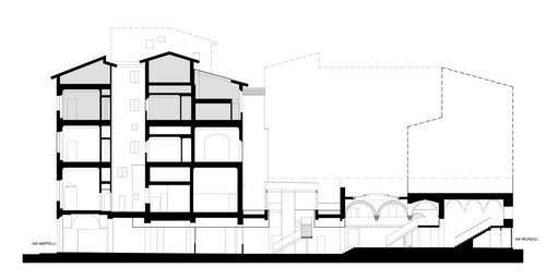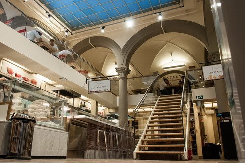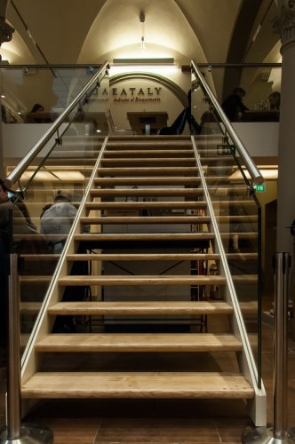 Obiettivo del progetto Eataly di Firenze, oltre all’armonizzazione del concept al contesto storico architettonico dell’edificio, la restituzione in chiave sostenibile di un oggetto a spiccata vocazione energivora. La complessità del progetto derivava dalla necessità di combinare funzioni diverse che hanno come motivo comune l’espressione del culto e della cultura del cibo. Aule didattiche (scuola di cucina, percorsi per visite guidate, dimostrazioni …), sale di lettura, sale riunioni, uffici con i relativi spazi di servizio (bagni, ripostigli, magazzini), un ristorante e spazi di vendita erano le funzioni da organizzare e rendere armoniche all’ambiente esistente. L’attività didattica, finalizzata alla valorizzazione delle tradizioni culinarie italiane, è uno dei momenti essenziali del progetto che è stato sviluppato attraverso librerie tematiche, audiovisivi, zone di consultazione, aree didattiche con schermi interattivi presenti in tutti gli ambienti. Per definire gli spazi funzionali alle attività sono state parzialmente demolite le murature, aumentando le dimensioni degli ambienti destinati alla didattica e alle degustazioni, senza alcun incremento di Superficie Utile Lorda. I lavori di demolizione sono stati ripresi di intonaco e successivamente sono state tinteggiate le porzioni di muratura conservate. Gli ambienti sono stati adeguati alle normative in tema di barriere architettoniche. Il tema per la sede fiorentina di Eataly è il Rinascimento: un’evocazione di carattere squisitamente multimediale con riferimenti audiovisivi e testuali e riferimenti concreti attraverso assaggi e degustazioni. Il progetto architettonico ha inteso restituire un’immediata riconoscibilità e fruizione degli ambienti a finalità evocativa. Oltre alle molteplici esposizioni monotematiche attinenti ai vari reparti nei quali si sviluppa Eataly, il progetto prevede numerosi spazi dedicati alla vendita e/o alla consultazione gratuita dei testi. Gli interventi Nel rispetto dellle complesse norme che regolano l’inserimento di attività commerciali in immobili vincolati, gli interventi sono consistiti nel risanamento conservativo, restauro e conservazione. L’obiettivo era chiaramente quello di migliorare le prestazioni e adeguare gli spazi alle nuove funzioni previste. Per la localizzazione delle nuove attività si è in primo luogo tenuto conto dei numerosi aspetti artistici e decorativi presenti, tra ci soffitti decorati del periodo di Firenze capitale, attraverso interventi edilizi contenuti che rispondessero a esigenze esclusivamente di tipo normativo-funzionali. Per la collocazione delle varie funzioni ai diversi piani il progetto ha previsto una ridistribuzione dei percorsi e degli ambienti fruibili dagli utenti ottenuti con minime modifiche alle aperture e ai tramezzi esistenti. Tale scelta è dovuta alla volontà di preservare l’impianto planimetrico esistente, la generale organizzazione degli ambienti e gli elementi di pregio storico e architettonico. Gli interventi di manutenzione ordinaria hanno riguardato il ripristino delle pavimentazioni, rimuovendo quelle danneggiate esistenti, caratterizzate da fenomeni di fessurazione e mancata aderenza al massetto di supporto. E’ stata effettuata la manutenzione ordinaria e straordinaria degli impianti esistenti, l’adeguamento e l’integrazione degli stessi, con particolare riferimento agli impianti di tipo meccanico, elettrico ed antincendio, necessari allo svolgimento delle funzioni previste in progetto. Al piano terra, al piano ammezzato e nelle aree soppalcate sono state collocate le aree didattiche, una zona di mercato, ambienti per la ristorazione, la libreria e spazi di servizio. L’adeguamento distributivo degli spazi ha imposto l’apertura di passaggi e di porte per creare nuovi collegamenti tra i vani, garantendo un attraversamento e una circolazione ottimale degli ambienti.La scala ha una struttura portante è in acciaio e vetro strutturale; la grande copertura ,che illumina la sala centrale e mette in comunicazione con il piano superiore, è invece realizzata in vetro strutturale. Il vetro, doppio strato temperato stratificato con interposta pellicola e trattamento basso-emissivo, è collegato da “ragnetti” fissati ad elementi metallici. Al piano terzo è stato realizzato un nuovo solaio per trasformare un ambiente unico in due locali tecnici e un’apertura sul solaio di copertura per la localizzazione di apparecchiature tecniche a cielo aperto, necessarie per la climatizzazione degli ambienti. Illuminotecnica e impiantistica Il sistema di illuminazione si basa sulla grande corte vetrata, fulcro fisico dell’ambiente, in grado di assicurare una quota importante di luce naturale. Questo grande pozzo di luce, che collega i piani della nuova sede di Eataly, è integrato da un sistema di illuminazione diffusa, con sorgenti alloggiate prevalentemente nei controsoffitti. Negli ambienti affrescati è stata scelta obbligata quella di utilizzare le pareti (libere da interventi artistici) come elementi ospitanti le luci. Cavi d’acciaio orizzontali sostengono corpi illuminanti che propongono luce diffusa. In tutti gli ambienti sono state utilizzate luci LED Gli affreschi sono protetti con un raffinato sistema di regolazione igrotermica che termoregola anche tutti gli altri spazi. L’impianto di climatizzazione è unico per tutti i 3 piani, e si basa su un gruppo frigo polivalente aria/acqua, alimentato con energia elettrica, con distribuzione del caldo/freddo ai piani mediante batterie di scambio. Le batterie a loro volta alimentano unità di trattamento aria al piano terreno, e unità fan-coil ai piani superiori. Unità di prelievo e immissione dell’aria sono posizionate in copertura. L’impianto antincendio è tipo misto , con idranti e sprinkler; questi ultimi sono alimentati attraverso un deposito posto nel sottosuolo. Consiglia questo progetto ai tuoi amici Commenta questo progetto