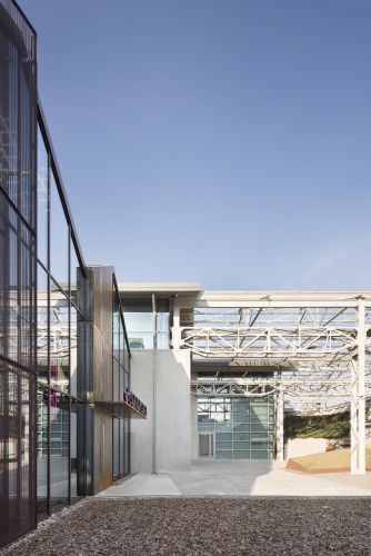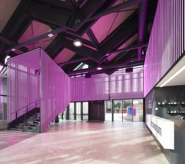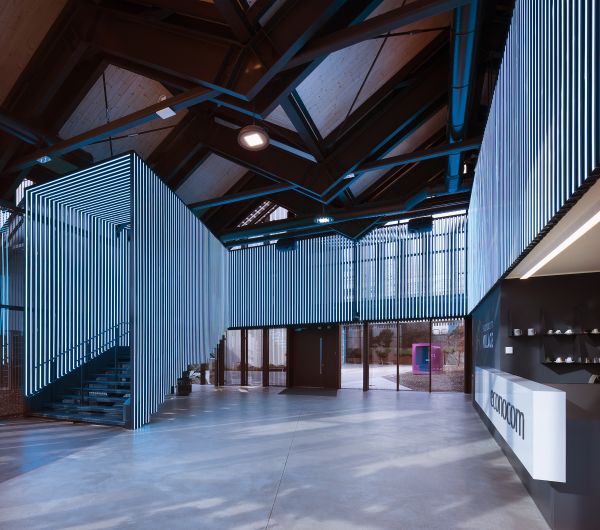 La nuova sede di Econocom nasce dall’idea di realizzare un edificio altamente rappresentativo, permeato dalla luce e dal verde, che richiamasse le forme già presenti all’interno della Forgiatura, ma che al tempo stesso potesse diventare il nuovo Innovation Hub del quartiere. a cura di Silvia Giacometti Econocom, azienda specializzata nella digitalizzazione delle imprese, sceglie come luogo per la sua nuova sede l’area La Forgiatura a Milano, promossa dagli sviluppatori di RealStep e progettata dallo Studio Giuseppe Tortato Architetti e Il Prisma. L’idea da cui è scaturito poi tutto il progetto è stata quella di realizzare un edificio altamente rappresentativo, permeato dalla luce e dal verde, che richiamasse le forme già presenti all’interno della Forgiatura, ma che al tempo stesso potesse costituire un nuovo landmark con l’obiettivo di valorizzare quella parte del campus, posta nel cuore dell’area verso il cavalcavia di via Palizzi, e diventare il simbolo del nuovo Innovation Hub pensato da Econocom. Il progetto Econocom ha colto nella Forgiatura il luogo ideale per sviluppare e divulgare la propria visione, garantendo alle proprie persone un’esperienza di lavoro innovativa e inclusiva, incentrata sulle loro esigenze, con grandi impatti sul work-life balance e sul benessere psico – fisico. La richiesta del committente era la realizzazione di uno spazio di collegamento tra i due edifici già esistenti all’interno del campus della Forgiatura oggetto dell’intervento: la Forgia e La Tecnica, spazi tra i più rappresentativi dell’originaria realtà industriale, rigenerati dal progetto dello Studio Giuseppe Tortato valorizzando le strutture in ferro esistenti e portando all’interno luce e verde, con la creazione di colline, patii interni e giardini fruibili dagli utenti finali. Tecnicamente il compito non era facile anche perché negli spazi posti tra i due edifici era già esistente un parcheggio di due piani interrati ed era quindi necessario adottare una soluzione che consentisse di non gravare sulla struttura già esistente, appoggiandosi sulle paratie realizzate a partire dal 2008. Una vera e propria sfida progettuale considerati i tempi di realizzazione, i professionisti e le imprese coinvolte, la dimensione dell’intervento, che complessivamente ha riguardato oltre 6.000 mq con tempi di consegna fissati in meno di un anno. Partendo dall’idea di realizzare un edificio permeato dalla luce e dal verde sono state realizzate 4 capriate metalliche con luce netta, da pilastro a pilatro, di oltre 22 m, ciascuna suddivisa in tre campate di forma triangolare (che richiamano le coperture già esistenti), poste a circa 5 m di distanza le une dalle altre: si tratta di veri e propri “ponti” di collegamento tra i due edifici, senza alcun pilastro intermedio, se non quelli poggianti sulle paratie del parcheggio, che generano una grande Hall interna alta fino a 8 m, completamente permeata dalla luce. La copertura, ideale proseguimento della Tecnica, sia per la forma (le tre capanne parallele) che per il materiale (zinco-titanio) si apre verso via bianchi creando un patio sistemato a verde, visibile sia dall’esterno dell’area che dall’interno del nuovo edificio. Le facciate vetrate sono ritmate da parti opache in corten, un materiale già presente all’interno della Forgiatura, ma interpretato in modo innovativo, in modo da caratterizzare l’edificio come nuovo rispetto agli altri: in particolare l’utilizzo della lamiera microforata a schermatura delle parti maggiormente esposte al sole, conferisce carattere al nuovo intervento ed è al tempo stesso un valido contributo nell’ottenimento del miglior comfort possibile. La richiesta di Econocom di creare delle sale riunioni a doppia altezza, che si affacciassero sul verde, è stata soddisfatta dallo Studio Tortato, con la collaborazione dell’ingegner Bruno Salesi di Biesse Consulting per gli aspetti strutturali, appendendo i nuovi volumi alle 4 capriate portanti. Gli spazi interni Nel campus La Forgiatura, Il Prisma ha progettato l’architettura degli spazi interni dei cinque edifici, interpretando i bisogni di dipendenti e visitatori, e associando gli spazi a un sito web interattivo da navigare fisicamente. “Wiring Connection” è il concept che esprime il mondo Econocom. Una rete complessa che collega funzioni, spazi, tecnologie, persone ed è sottesa da un linguaggio comune decodificabile da tutti. Integrare più servizi a diverse attività e far convergere un alto livello digitale in spazi fisici non convenzionali: dalla palestra dove ricaricarsi, alla lounge room in cui attivare la collaborazione, da laboratori tech pensati per i bambini, all’Academy strutturata per la formazione dei più grandi. Il coinvolgimento dei fruitori finali nel processo di progettazione e l’interpretazione dell’anima di Econocom sono stati i due fattori che hanno maggiormente contribuito alla creazione dell’esperienza di engagement. Attraverso il design è, infatti, possibile aumentare il senso di appartenenza e la motivazione aziendale. L’esperienza di un mondo costruito sulla fusione tra fisico e digitale comincia all’interno della Green House; un edificio architettonicamente molto simile ad una Serra, da cui prende il nome, che guida le persone attraverso un tunnel dimensionale simbolo dell’universo phygital. Led programmabili creano molteplici scenari in base all’esperienza che si vuole generare e caratterizzano la scala e il tunnel, che insieme formano l’accesso al mondo Econocom. All’interno della rete, come tanti tasti funzione, box vetrati contengono attività specialistiche; ogni colore stabilisce una destinazione d’uso distinta. Sono azzurri i luoghi che infondono calma e concertazione; magenta quelli che stimolano la creatività; gialli quelli che innescano positività e allegria; mentre in rosso gli spazi destinati alla convivialità. A tessere insieme le varie parti dell’Econocom Vill