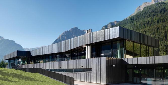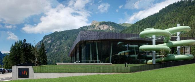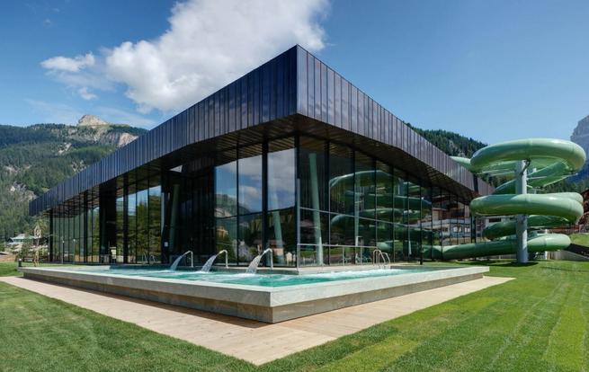 Piscina Dòlaondes a Canazei L’idea dei due lotti, dalla proprietà impostati costruttivamente in modo autonomo e separato anche se, una volta completati, saranno entrambi perfettamente integrati e reciprocamente collegati, nasce dall’entità dell’investimento globale e dalla relativa giovinezza del centro benessere Eghes (anno 1999) al fine di diluire nel tempo l’investimento, considerato che l’attuale centro benessere, benché di dimensione media, sia sufficientemente dotato delle strutture di un moderno centro benessere. La piscina invece necessità di una operazione di ridefinizione completa ed integrale. Il progetto è stato quindi pensato per intervenire in modo autonomo e separato con la costruzione del nuovo blocco di vasche (lotto 1), lasciando inalterata la parte ospitante l’attuale centro benessere Eghes. Il nuovo progetto è dotato delle seguenti strutture: vasca natatoria semiolimpionica da 25 x 12,9 metri (5 corsie, superficie totale= 322,5m²) con minore profondità data l’assenza di trampolini. (profondita min.=1,35m; profondità max.=1,80m); vasca “fun”, con giochi d’acqua (in particolare vortici, cascate e idromassaggi); (superficie totale= 125,96m²); vasca ricreativa e idromassaggio; (superficie totale= 49,09m²); scivolo tubolare parabolico di 110m con vasca (superficie totale= 22,35m²); whirlpool (superficie totale= 7,07m²); piscina esterna con acqua salata con idromassaggi (superficie totale= 145,25m²); spazi di sosta e relax sia a bordo vasca che sulla balconata posta al primo piano; snack-bar all’ingresso della struttura; “hall” (ingresso) con cassa; spogliatoi e servizi igienici adeguati agli spazi interni di vasca; vani tecnici per climatizzazione, depurazione acque, centrali termiche e cogenerazione nonché diversi vani aggiuntivi e magazzini. Il nuovo edificio balneare è composto da complessivamente tre piani Nel piano interrato sono stati collocati l’intero impianto tecnico e di trattamento acque, con vari depositi e spogliatoi per il personale e arbitri. I vani tecnici esistenti sono stati in parte conservati ed allestiti con impianti all’avanguardia. Un corpo ad un piano che e’ stato inserito in mezzo alla strutura esistente e al nuovo edifico della piscina coperta definisce la nuova zona d’ingresso della piscina coperta al piano terra. Il piano terra è composto da un’ampia entrata con foyer e zona casse, da una area riservata alla gastronomia, da spogliatoi con i vani sanitari, da vano bagnini nonchè pronto soccorso e dalla piscina con le diverse vasche e le varie attrazioni nonchè un prato all’esterno. La piscina è stata progettata in maniera tale da creare un ambiente unico, anche se le singole vasche definiscono le zone ricreative e tematiche circostanti. L’ampia piscina viene alleggerita da diversi pilastri inclinati, i quali costituiscono un elemento di allestimento ricorrente per tutti gli interni. Il primo piano è caratterizzata da diverse zone relax aperte e chiuse nonchè da una galleria (tribuna) dalla quale è possibile una visuale sull’intera area piscina e sul paesaggio circostante. Vetrate a tutt’altezza su tutti i lati e un rivestimento delle facciate in rame preossidato determina l’aspetto esteriore dell’edificio. È stata fatta consapevolmente attenzione che i due materiali scelti non fossero di contrasto troppo forte al paesaggio circostante; l’integrazione dei colori scelti con i boschi scuri che caratterizzano i paesaggi montani è stata di primaria importanza. L’altezza moderata dell’edificio ed il tetto marcante ad una falda mascherano l’alta densità edificata del nuovo edificio in confronto alle costruzioni adiacenti. Lo scivolo posizionato sul lato sudest dell’edificio rapprensenta un elemento marcante (landmark) della costruzione. Esecuzione edile facciata in vetro: struttura montante traverso con vetratura a 3 strati (Ug=0,7W/m²K; Ucw=<1,1W/m²K; dimensione vetrata mass. 2,4×4,1m; superficie totale:1.220m²; areazione integrata nella struttura portante); rivestimento facciata e tetto: strisce in rame pretrattate (preossidate) in diverse larghezza con piegatura fissata su lastre OSB; struttura tetto: tetto verde (inverdimento estensivo) con impianto fotovoltaico e collettori tubolari per il riscaldamento dell’acqua con struttura sottostante portante in panelli BSH, travi lamellari e travi reticolari in acciaio; struttura edificio portante: le pareti e i solai sono stati eseguiti in cemento armato massiccio in combinazione con pilastri prefabbricati; rivestimento solai (solaio acustico): pannello fonoisolante monostrato in lana di legno mineralizzata con magnesite dalle elevate proprietà acustiche con diverse superfici strutturate; vasche: in cemento armato massiccio (vasca bianca, sistema Zementol) con rivestimento in piastrelle e pietre naturali e Whirlpool e vasca di passaggio a piedi nudi in acciaio inox; trattamento acque: 4 impianti separati, vasca sportiva 145m³/h; vasca divertimento, vasca bambini e vasca di amaraggio scivolo 290m³/h; vasca esterna 155m³/h e Whirlpool 41m³/h; impianto elettrico: 142,00 kW di prestazione elettrica installata; impianto di areazione: impianto 1 (spogliatoi; solarium) V=8.000m³/h con 5,6 LW/h; impianto 2 (Bar) V=2.500m³/h con 5,2 LW/h; impianto 3 (cucina) V=2000m³/h con 55,0 LW/h; impianto 4 (piscina) V=32.000m³/h con 2,5 LW/h Fotovoltaico Canazei: Potenza installata: 109,00 kWp Produzione annua: 119.249,50 kWh Emissioni risparmiate: Anidride solforosa SO2 : 83,50 kg Ossidi di azoto NOx : 106,33 kg Fonte http://copperconcept.org/ Consiglia questo progetto ai tuoi amici Commenta questo progetto