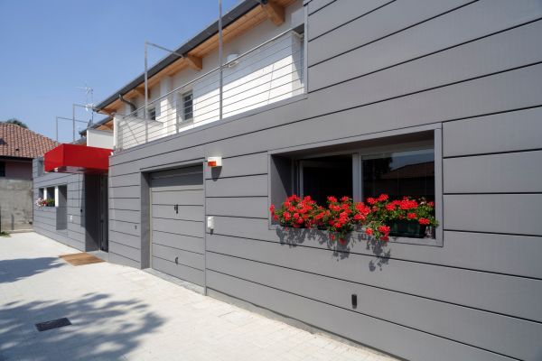 La riqualificazione delle aree industriali dismesse è una delle grandi opportunità per il recupero del patrimonio edilizio esistente e la sua valorizzazione in termini architettonici. E’ il caso del capannone all’interno dell’area fra via Marelli e via Goldoni a Cerro Maggiore, nel milanese, che è stato trasformato dal punto di vista estetico e funzionale nella sede di una nuova attività produttiva di ricerca, sviluppo e assistenza in campo informatico (hardware e software), su progetto dell’architetto Fabrizio Monza. Facciata principale degli ex edifici industriali a Cerro Maggiore L’edificio oggetto di demolizione-ristrutturazione risale agli anni ’50 ed è costituito da un parallelepipedo a base leggermente trapezoidale di circa 21,5 metri di lunghezza per 12 metri di profondità sormontato da una volta a botte. In base all’analisi e alle verifiche eseguite che ne hanno evidenziato l’avanzato stato di degrado, si è proceduto alla sostituzione quasi integrale della struttura del corpo principale mantenendone il sedime originario e riducendone in parte l’impatto volumetrico, per consentire una nuova percezione degli spazi e un miglioramento complessivo delle relazioni visuali pubbliche.La relazione diretta tra la strada e l’edificio è stata rinnovata attraverso la realizzazione di una quinta geometrica e marcata che sottolinea il carattere orizzontale dell’edificio svuotandolo in parte della “corposità” originale attraverso l’arretramento del piano primo e l’uso delle parti vetrate (fronte di via Goldoni). Operazione enfatizzata dall’eliminazione dei volumi esterni spostando al piano terra del capannone principale tutta la superficie esistente a destinazione produttiva, che ha consentito di sgombrare il cortile, realizzare posti auto e aumentare lo spazio verde alberato. Vista prospettica degli edifici a Cerro Maggiore Dal punto di vista distributivo interno è stato inserito un nuovo piano (dove è stata trasferita l’unità residenziale esistente) sfruttando la grande altezza presente con la realizzazione di un apposito solaio ed è stato recuperato il sottotetto a fini abitativi, al quale è asservito il box al piano terra. Per quanto riguarda invece la conformazione planivolumetrica e la composizione architettonica e materica appare netta la separazione fra il piano terra e il piano primo. L’edificio si presenta composto al piano terra da un parallelepipedo rivestito in doghe di zinco titanio QUARTZ-ZINC®, su cui s’innesta il volume arretrato del piano primo con rivestimento ad intonaco. Su tutto il “segno” della copertura a botte dell’ex capannone industriale, attualmente rivestito in zinco titanio QUARTZ-ZINC® con la tecnica della doppia aggraffatura. Rivestimento in zinco titanio di VM ZINC “La decisione di utilizzare un materiale come lo zinco titanio QUARTZ-ZINC® – come sottolinea l’architetto Fabrizio Monza – è nata subito, avendo deciso che era necessario differenziare il nuovo organismo edilizio dal contesto urbano nonché rinnovare completamente la percezione consolidata dell’edificio preesistente. Nel dettaglio si è scelto di esaltare la forma allungata dell’edificio mediante doghe orizzontali con fuga accentuata che trovano riscontro formale e linguistico nella copertura anch’essa caratterizzata da una modularità (ma in senso verticale).” Consiglia questo progetto ai tuoi amici Commenta questo progetto