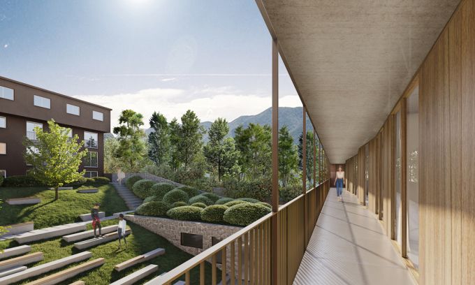 Il progetto della Franklin University Switzerland porta la firma dello studio milanese Flaviano Caprotti Architetti. Un nuovo edificio con due blocchi distinti: un volume dedicato agli spazi comuni ed educativi, un altro destinato alle residenze universitarie. Consegna prevista per la primavera del 2022 a cura di Pietro Mezzi I due blocchi del nuovo campus si distinguono per forma e materiali (credits, Flaviano Capriotti Architetti) Indice degli argomenti: Un’architettura aperta e permeabile Il blocco residenziale e quello delle funzioni pubbliche Lamelle fotovoltaiche che seguono il sole Il progetto del verde Presentato il progetto del nuovo campus della Franklin University Switzerland (Fus) a Sorengo vicino a Lugano. Si tratta di un’architettura che nasce nel nome della condivisione di sapere, esperienza e competenza. Un luogo di aggregazione non solo studentesca, ma della comunità, che verrà ultimato nella primavera del 2022. Il progetto architettonico è dello studio milanese Flaviano Capriotti Architetti. Un’architettura aperta e permeabile L’approccio olistico al sapere che caratterizza la mission della Franklin si riflette in un’architettura permeabile e aperta al contesto, capace di offrire alla comunità funzioni pubbliche, oltre che un nuovo landmark urbano. L’edificio si caratterizza per i due blocchi architettonici distinti, messi in relazione unicamente da viste prospettiche: un volume dedicato agli spazi comuni ed educativi e un altro destinato alle residenze universitarie. La vista su strada della nuova ala del Campus della Franklin University Switzerland a Sorengo vicino a Lugano (credits, Flaviano Capriotti Architetti) L’università ticinese mette al centro, oltre al curriculum degli studi e la didattica, anche la condivisione della vita quotidiana: i campus e le soluzioni residenziali sono infatti occasioni di formazione e crescita, non solo professionale, ma anche umana e personale. Il blocco residenziale Con quasi 300 studenti di oltre 50 Paesi, 17 corsi bachelor e cinque corsi magistrali, la Franklin University, fondata nel 1969, è un istituto universitario che offre un percorso educativo ispirato al modello americano. Il numero degli studenti è in costante crescita, per questo l’ateneo svizzero ha scelto di ampliare uno dei suoi residence: il Campus 3. La residenza del campus vista dal giardino interno (credits, Flaviano Capriotti Architetti) Il blocco residenziale è stato pensato con superfici in cemento pigmentato e stampato, che richiamano il colore e la texture del paesaggio alpino circostante, assicurando al tempo stesso la privacy. Completano l’idea architettonica i giardini, progettati da Hortensia Garden Design: uno spazio comune dove poter godere della natura e dei suoi benefici. All’interno della nuova ala sono previste differenti funzioni: 30 unità abitative, spazi educativi, uffici, area fitness e parcheggi sotterranei. La lunga balconata dello studentato (credits, Flaviano Capriotti Architetti) Il corpo residenziale ha un carattere più privato e introverso e si mette in relazione con il contesto in maniera classica, creando un fronte strada compatto. La facciata risulta forata da finestre uguali, scalate saltuariamente in dimensione, ma disposte in maniera rigida secondo una griglia. Lo spazio per studiare (credits, Flaviano Capriotti Architetti) La trama, lineare e continua, è allusiva della stratificazione delle pagine di un libro: emblema di cultura e comunicazione. Il libro incide in maniera simbolica il paesaggio alpino circostante riproponendolo sulla facciata dell’edificio universitario. Il living di uno degli alloggi del campus (credits, Flaviano Capriotti Architetti) Il volume residenziale si collega ai volumi precedentemente edificati sul lotto, andando a ricomporre la corte a C originaria, la cui distribuzione è affidata a ballatoi aperti che si affacciano sul giardino privato interno. Il blocco delle funzioni pubbliche Il volume destinato agli spazi pubblici si caratterizza per il corpo luminoso e la forma organica e sinuosa. Costruito in U-glass, satinato e semi trasparente, dichiara con la sua stessa forma, inclusiva e avvolgente, la volontà di diventare un riferimento per la comunità, luogo di incontro urbano oltre che educativo. Schema delle relazioni funzionali -credits, Flaviano Capriotti Architetti Nell’auditorium un bagliore diffuso segnala all’esterno le attività in corso, trasformando l’edificio in spazio vitale, in dialogo con il contesto urbano circostante. Lamelle fotovoltaiche che seguono il sole Il volume destinato alla condivisione e alle funzioni comuni si inserisce nel complesso come una lanterna ed è rivestito da un sistema orientabile di lamelle fotovoltaiche bianche, sviluppato in collaborazione con il dipartimento Ambiente Costruzioni e Design della Scuola universitaria professionale della Svizzera Italiana. Si tratta del primo sistema fotovoltaico in Europa dotato di componenti che seguono l’orientamento del sole: un meccanismo che rende l’edificio più sostenibile dal punto di vista ambientale e, al tempo stesso, offre ombreggiamento all’interno degli spazi con maggior comfort termico e visivo. Il progetto del verde I giardini del nuovo campus saranno un luogo dove poter godere degli effetti benefici della natura: l’obiettivo è offrire a studenti e professori un luogo rigenerante. Lungo il percorso, circondati da alberi e arbusti, sono state pensate delle Garden Rooms: piccole aree progettate per godere degli effetti benefici della natura, coinvolgendo tutti i sensi con profumi, colori e suoni. Una particolare attenzione è riservata alla stagionalità della vegetazione, in ogni periodo dell’anno sarà assicurata un’esperienza benefica. Schizzi progettuali (credits, Flaviano Capriotti Architetti) Schizzi progettuali (credits, Flaviano Capriotti Architetti) Consiglia questo progetto ai tuoi amici Commenta questo progetto