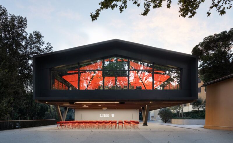 Il nuovo edificio, che ospiterà spazi per l’insegnamento e per eventi culturali e artistici, sembra dissolversi nel paesaggio. L’arretramento del piano terra mette in risalto la leggerezza del volume superiore e crea un ambiente aperto e coperto al tempo stesso. Il legame con il contesto è esaltato dal rivestimento in legno naturale A cura di: Pietro Mezzi L’inserimento del nuovo volume nel contesto del campus della Luiss Indice degli argomenti Toggle L’idea progettualeGli interniLe finitureGli spazi esterniParla il progettista A ridosso di Villa Ada, nel cuore del quartiere Parioli di Roma, Alvisi Kirimoto, in collaborazione con Studio Gemma, firma un nuovo hub per il polo universitario LUISS Guido Carli. L’intervento, che completa gli spazi universitari e potenzia le aree verdi circostanti, consiste nella demolizione di un capannone esistente, soggetto a vincolo paesaggistico, e nella costruzione ex-novo, con ampliamento, di un edificio didattico. L’edificio, che si sviluppa su due livelli, per una superficie di 1.500 metri quadrati, è posizionato nel punto più accessibile e di maggiore valore paesaggistico del complesso, in prossimità di un boschetto posto a sud del lotto, ultima propaggine del parco e della piazza principale del campus. L’idea progettuale Il progetto nasce dall’idea di sollevare il volume per metterlo in connessione diretta con le chiome degli alberi, liberando il più possibile il piano terra. Quest’ultimo ospita l’ingresso, un’aula e i servizi, mentre il piano superiore, accoglie al suo interno un anfiteatro e due aule. Immerso nel verde e con la sua pelle permeabile e trasparente, l’edificio sembra dissolversi nel paesaggio, ricordando la classica casa sull’albero, da cui riprende oltre che il profilo, anche la dimensione quasi domestica degli spazi, progettati a misura di studente. Gli interni Gli interni sono stati accuratamente pensati per garantire grande versatilità e ospitare diverse attività didattiche ed eventi culturali, artistici e sociali: dalle conferenze alle lezioni in aula, dalle serate di gala alle proiezioni cinematografiche. I pannelli acustici sospesi danno vita al controsoffitto dell’anfiteatro; il colore rosso corallo cattura l’attenzione fin dall’esterno L’anfiteatro, concepito per molteplici usi e le aule, pensate per ridefinire l’equilibrio tra insegnamento in presenza e didattica a distanza, sono dotati di impianti e sistemi di audio-video conferenza sofisticati e integrati nell’architettura. Una scala a rampe incrociate collega internamente i due livelli tramite uno spazio a doppia altezza, mentre una terza scala connette il primo piano con l’esterno. Il piano terra, visibilmente arretrato, sottolinea ancor di più la leggerezza del volume superiore e crea uno spazio aperto e coperto al tempo stesso, attrezzato per corsi e attività all’aperto. La parte superiore dell’edificio è rivestita in listelli di legno naturale Rivestito in listelli di legno naturale e vetro, il piano superiore proietta l’edificio tra le cime degli alberi, creando un dialogo privilegiato tra architettura e contesto, offrendo uno spaccato dinamico delle attività che si svolgono al suo interno. Le finiture Con la stessa sensibilità sono stati scelti colori, texture e materiali di progetto: le tonalità del rivestimento metallico e dell’intonaco graffiato si mixano con la nuance calda del legno, in un gioco equilibrato di richiami e di contrasti. Ispirato a principi di progettazione sostenibile e realizzato in materiali naturali, l’edificio ha ottenuto la certificazione Leed Platinum. Il fronte retrostante del nuovo edificio I pannelli acustici sospesi, che definiscono il controsoffitto dell’anfiteatro, dal colore rosso corallo, catturano l’attenzione fin dall’esterno, mentre la loro silhouette organica rafforza il dialogo con il boschetto adiacente. Il rosso acceso dei pannelli del controsoffitto caratterizza anche alcuni arredi Lo stesso rosso acceso caratterizza gli arredi e alcuni elementi delle aule: un dettaglio che conferisce all’intero complesso coerenza visiva, soprattutto quando il volume si accende nelle prime ore serali. Gli spazi esterni Gli spazi esterni sono stati ridisegnati con una pavimentazione in ghiaietto stabilizzato, mentre un percorso in deck, protetto all’ombra di un filare di lecci, connette l’area del boschetto con la piazza. Tutte le aree all’aperto sono state attrezzate e organizzate per favorire lo studio, gli incontri informali, il relax e il gioco, offrendo possibilità di aggregazione e flessibilità nell’uso. La sezione trasversale (credits, Alvisi Kirimoto) Simile a un enorme cannocchiale che aggetta sul verde e vigila sulla piazza sottostante, il progetto diventa il nuovo cuore della vita del campus universitario. Parla il progettista “Il legame indissolubile tra la struttura e il verde circostante suggerisce un approccio innovativo all’istruzione che, per favorire l’apprendimento, punta sul benessere generato dal rapporto con la natura – spiega l’architetto Massimo Alvisi -. L’elevata permeabilità che caratterizza la pelle dell’edificio, non soltanto facilita l’integrazione nel paesaggio e le occasioni di scambio con l’intera comunità di studenti, ma è una scelta concettuale che rimanda all’apertura del campus”. La pianta del piano terra (credits, Alvisi Kirimoto) La pianta del piano primo (credits, Alvisi Kirimoto) Gli schizzi di progetto (credits, Alvisi Kirimoto) La sezione longitudinale (credits, Alvisi Kirimoto) Nuovo edificio scolastico LUISS Località: Roma, viale Romania, 32 Committente: Luiss Libera Università Internazionale degli Studi Sociali Guido Carli Progettazione: Alvisi Kirimoto e Studio Gemma Progettisti: Massimo Alvisi, Junko Kirimoto (Alvisi Kirimoto) e Cristiano Gemma (Studio Gemma) Impresa: Ecofast Sistema Area di progetto: 1.500 mq Consulenza strutturale: Inge.Co Consulenza impiantistica: Planex Consulenza Le