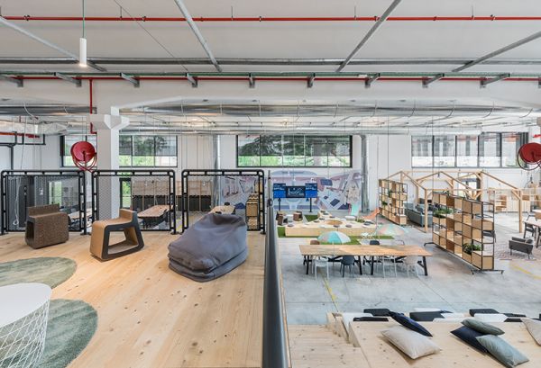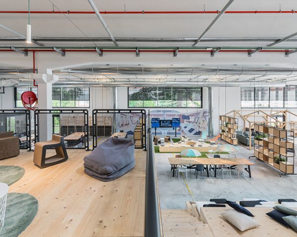 DEGW ha progettato l’Innovation Factory di Electrolux a Porcia seguendo dettagli ben definiti che hanno permesso di creare un ambiente flessibile dove i partner di Electrolux e altre realtà possono collaborare, confrontarsi e attivare sinergie efficaci e innovative. a cura di Silvia Giacometti Luogo in cui sperimentare nuove idee, e spazio in cui stringere sinergie innovative e nuove collaborazioni guardando al futuro dell’Industry 4.0: progettato e realizzato sotto la supervisione di DEGW – brand del Gruppo Lombardini22 dedicato alla progettazione integrata di ambienti per il lavoro – Innovation Factory di Electrolux è uno spazio di 1.000 mq all’interno dello storico stabilimento produttivo Electrolux di Porcia (Pordenone), ottenuto grazie alla ristrutturazione del primo fabbricato del sito industriale fondato da Lino Zanussi nel 1954. Gli spazi interni del nuovo Innovation Factory di Electrolux DEGW ha affrontato questo affascinante tema di Industry 4.0 valorizzando l’estetica industriale del sito (e preservando quindi i dettagli di valore dello stabile, quali il pavimento e le volte originali) e contaminandola con la flessibilità e la “snellezza” dei processi collaborativi contemporanei. Creative Area, una gradonata di legno conduce alla “Terrazza” soppalcata In un unico grande ambiente caratterizzato da pochi materiali primari (cemento, vetro, legno grezzo, lamiera metallica, verde sintetico e naturale) che risolvono completamente tutte le superfici, le finiture e gli arredi dello spazio, diverse aree tematiche e operative trovano configurazioni dedicate e allo stesso tempo interlacciate tra loro. La zona Conference In sequenza dall’ingresso: la zona Self Cafè con Kitchen Area adiacente; l’Area Relax con un gazebo-showcase la cui struttura di legno delimita funzioni in una cornice wireframe dalle forme domestiche; la Creative Area su un prato sintetico, ma con un vero albero al centro a fare ombra su sedute informali delimitate da quinte mobili a scaffale aperto; un’Area Operativa con 24 postazioni open e un’Area Startup più protetta con 8 postazioni. Un unico grande ambiente caratterizzato da pochi materiali primari tra cui cemento, vetro, legno grezzo, lamiera metallica, verde sintetico e naturale. Chiudono la serie un ambiente conference in forma di Sauna e una Flexy Area informale, mentre, in asse con la Creative Area, una gradonata di legno conduce alla “Terrazza” soppalcata, con booths chiusi che favoriscono concentrazione e riservatezza, e protetta da balaustre di lamiera stirata da cui affacciarsi sul laboratorio sottostante: un “Lab” di 250 mq dove esplorare prototipazione rapida, stampa 3d e altri sistemi come i robot collaborativi (COBOTS) e le tecnologie indossabili (wearable devices) per gli operatori delle fabbriche Electrolux. Impianti a vista, superfici e materiali non trattati, aperture, trasparenze, arredi mobili e leggeri fanno dell’Innovation Factory uno spazio “ruvido”, caldo e sofisticato insieme, dove tutte le attività si integrano funzionalmente e visivamente in un insieme contaminato e flessibile che, con semplici spostamenti, si può adeguare a esigenze diverse: attuali e anche future, poiché il progetto ha previsto alcuni varchi verso altri spazi adiacenti secondo una logica di potenziale ampliamento. “Electrolux Innovation Factory è un progetto davvero innovativo che offre uno spazio vivo, aperto e tecnologico, che favorisce la collaborazione e stimola nuove idee. Siamo orgogliosi e contenti di aver dato il nostro contributo alla lungimirante visione di Electrolux” – Alessandro Adamo, Director DEGW e Partner Lombardini22. “Il team DEGW ha capito perfettamente lo spirito dell’iniziativa e ha condiviso fin da subito con passione la nostra sfida: dare vita a Innovation Factory è un’avventura unica e una grande scommessa per il nostro gruppo, con l’ambizione di gemmare spazi simili anche negli altri continenti durante i prossimi anni. Altrettanto emozionante è stato trasformare in pochi mesi questo vecchio fabbricato in disuso nello spazio vibrante ed energetico che è oggi: pronto per ispirare e ospitare le migliori menti e concentrarsi assieme su un futuro collaborativo e digitale!” – Giovanni Pacini, Global Director Digital Industrial Operations Electrolux Pianta Piano Terra Consiglia questo progetto ai tuoi amici Commenta questo progetto