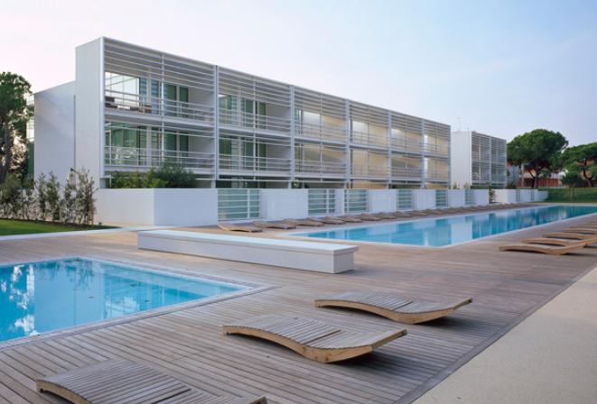 Jesolo Lido Village, l’icona del design residenziale della costa veneziana. Jesolo Lido Village è composto da tre elementi complementari: The Pool Houses, The Beach Houses e The Hotel & SPA. Progettati da Richard Meier & Partners, ispirati dalla qualità incontaminata della luce naturale, offrono un pacchetto residenziale di lussuosi appartamenti per vacanze che coniuga l’eccellenza architettonica moderna con la bellezza del litorale adriatico. The Pool Houses The Pool Houses, realizzato nel 2007, offre ai residenti degli appartamenti il perfetto connubio tra spazi privati e pubblici; il nucleo centrale è costituito dal bellissimo cortile con piscine e solarium. I lussuosi moduli residen- ziali autonomi presentano un sistema brise soleil che crea un’alternanza di volumi e spazi vuoti. Pool Houses di Jesolo Lido Village Questa struttura di appartamenti per vacanze, ampia e invitante, sfrutta la luce, i panorami e l’ambientazione naturale per creare una straordinaria offerta residenziale. Qualità e attenzione al dettaglio sono i segni distintivi di questi spazi ideati con cura, impreziositi da particolari progettati su misura ed accessori all’avanguardia. Scorcio di Pool Houses Gli angoli cottura sono eleganti e funzionali. Gli elementi in legno laccato bianco, i piani di lavoro in corian e gli accessori dal forte impatto estetico ed innovativo contribuiscono a creare un ambiente raffinato e in linea con le tendenze più attuali del design. The Beach Houses The Beach Houses, situato nella celebre località balneare di Jesolo Lido, costituisce un’oasi di eleganza, pace e raffinatezza. Il complesso, situato fronte mare e composto da dieci piani, offre 74 residenze di altissimo livello ed eccellenti servizi lungo una spiaggia immacolata, con ampie vedute del mare aperto e meravigliosi giardini privati. Beach House The Beach Houses riflette l’infallibile gusto di Meier attraverso un ottimo connubio di luce e ampi spazi che caratterizza sia la vita nella residenza, sia le attività all’aperto. Tutti gli appartamenti, caratterizzati da giuste proporzioni, si sviluppano su un piano e sono dotate di balconi che si affacciano sulle piscine, sui solarium e sui giardini. Le viste sono spettacolari e permettono di ammirare la spiaggia e il mare, mentre, dai piani più alti, affacciati verso ovest, è possibile scorgere la Laguna di Venezia. Vivere nei cinque attici è come cogliere un pezzo di cielo. Ogni residenza è straordinariamente spaziosa ed è arricchita da una piscina privata. Penthouses Ogni Penthouse di The Beach Houses è progettata per cogliere la bellezza del litorale e del mare. I soffitti alti e gli ampi spazi, caratterizzati da pareti in vetro su misura, accrescono il senso di spazio; muoversi all’interno di queste dimore di lusso, dove le stanze si susseguono ariose e piene di luce, è estremamente gradevole. Qualità e attenzione al dettaglio sono i segni distintivi di questi spazi ideati con cura, impreziositi da particolari progettati su misura ed accessori all’avanguardia. Sono previste al piano terra, a disposizione dei proprietari, una serie di piscine contornate da solarium in legno; un posto tranquillo e spazioso dove potersi rilassare godendosi la vista del mare. Gli appartamenti privati sono dotati di grandi terrazzi arredati, che offrono viste spettacolari della spiaggia, dei giardini, dei solarium e delle piscine. Scarica le piante in PDF dell’attico delle Beach Houses Scarica le piante in PDF Piano Terra delle Beach Houses Scarica le piante in PDF dall’1 al 7 delle Beach Houses Pool & SPA Sono inoltre a disposizione, per tutti i residenti, dei parcheggi sotterranei. Hotel Hotel Un Hotel & SPA a cinque stelle caratterizzerà la terza fase dello sviluppo. L’ Hotel sarà dotato di centro benessere, piscina e ristoranti esclusivi. Il moderno e lussuoso complesso sarà ubicato fronte mare. “Sto creando un nuovo concetto di spazio, dove trascorrere le vacanze e il tempo libero, utilizzando come unità di misura le dimensioni umane”. – Richard Meier Consiglia questo progetto ai tuoi amici Commenta questo progetto