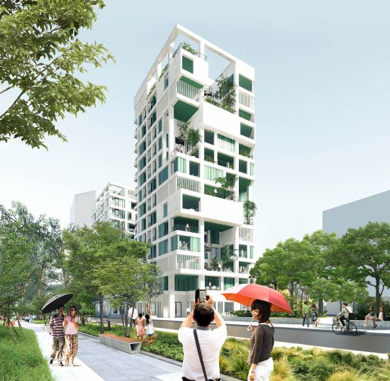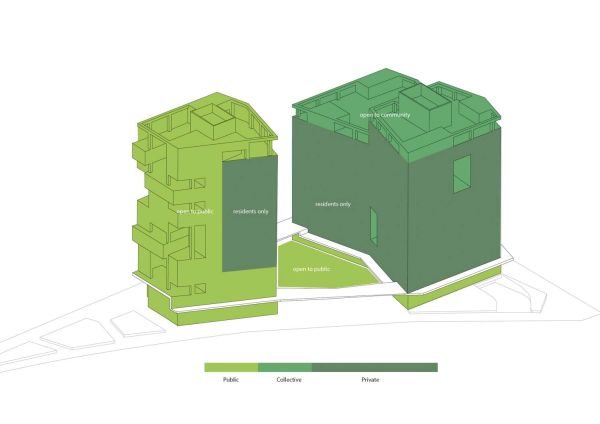 Kaohsiung è pronta ad ospitare il suo primo progetto di social housing, che prevede lo sviluppo di spazi abitativi accessibili definiti dalla flessibilità, dal giusto equilibrio tra spazi privati e comunitari, dalle tipologie abitative miste, dalla connessione con l’ambiente a cura di Tommaso Tautonico Lo studio di architettura Mecanoo ha svelato il suo progetto di housing sociale ed ambientale per la città portuale di Kaohsiung, a sud dell’isola di Taiwan. Si tratta di 234 unità abitative miste immerse nel verde e dedicate all’edilizia popolare. La filosofia di social housing dello studio di architettura Mecanoo è molto semplice: “sviluppare spazi abitativi accessibili, flessibili, con il giusto equilibrio tra spazi privati e comunitari dove le abitazioni sono connesse con l’ambiente e con l’identità locale”. Il progetto, vincitore della competizione dedicata all’edilizia popolare, si inserisce perfettamente nel più ampio progetto di riqualificazione urbana della città di Kaohsiung, a sud nell’Isola di Taiwan. Situato tra la ferrovia e un corridoio di verde urbano, il nuovo complesso residenziale sarà costituito da due edifici collegati da un “ponte” verde al piano terra che fungerà da ingresso per i residenti. Progetto di riqualificazione urbana della città di Kaohsiung Sky Park: l’housing sociale e ambientale per tutti Con i suoi 28.600 m2 di superficie complessiva, il complesso residenziale di Kaohsiung ospiterà 234 unità da 25 a 75 m², progettate per soddisfare le necessità di una grande varietà di utenti: studenti, giovani coppie, famiglie con bambini, anziani o persone con disabilità. Per integrare il progetto all’identità locale, i piani terra di entrambi gli edifici saranno destinati ad uso commerciale. L’edificio più alto, quello ad est, ospita la maggior parte degli appartamenti e nella parte più alta ci sono gli spazi dedicati alla comunità (palestra, cucina in comune, sala lettura), mentre la torre ovest più bassa ospita strutture più pubbliche, come un centro diurno dedicato agli anziani. “Distribuito su più piani e collegato da terrazze verdi , lo Sky Park funziona come un centro sociale aperto al pubblico, che riunisce residenti e comunità locale“, ha dichiarato lo studio di architettura Mecanoo durante la presentazione del progetto. Gli spazi residenziali e quelli aperti alla comunità nel progetto di Kaohsiung Il progetto architettonico di Kaohsiung La facciata degli edifici alterna elementi verticali e finestre per dare ritmo all’edificio. La profondità tra la struttura e le pareti dell’edificio crea sufficiente ombra e riduce l’esposizione del sole all’interno degli appartamenti. Per il progetto è stato scelto di creare un contrasto tra struttura e pareti: piastrelle colorate di bianco e di verde sono state utilizzate per creare un distacco rispetto al classico stucco di colare bianco con cui sono rivestiti i blocchi abitativi di Taiwan. Una composizione giocosa unica, che identifica visivamente la Kaohsiung Social Housing. img by Mecanoo Consiglia questo progetto ai tuoi amici Commenta questo progetto