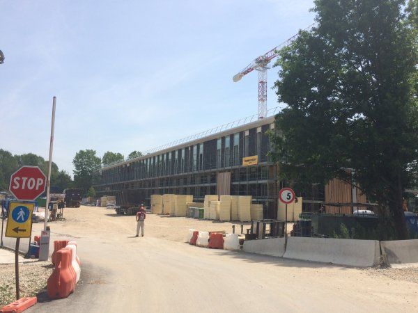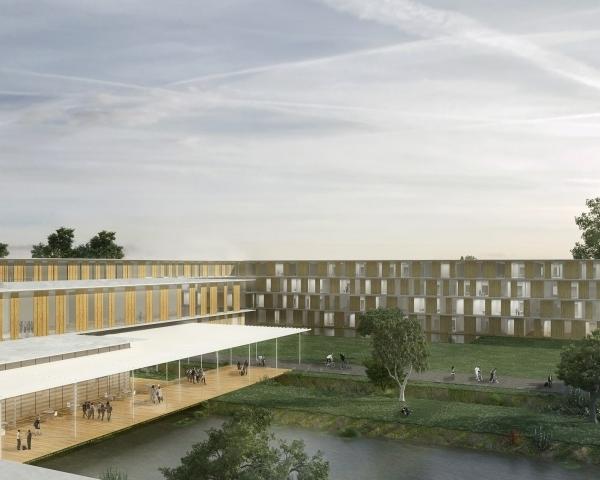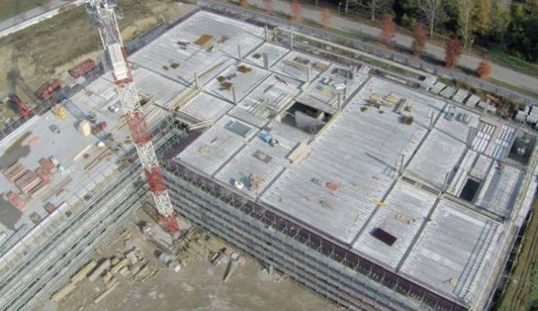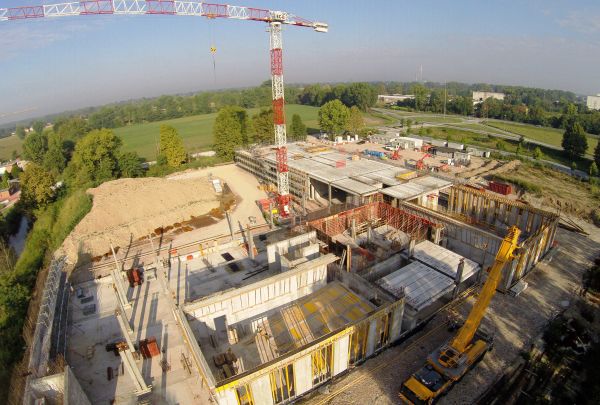 Rispetto e valorizzazione del paesaggio culturale e naturale esistente per il progetto dell’archistar giapponese Kuma a Lodi. Proseguono senza sosta i lavori nel cantiere che consentirà il completo trasferimento a fine 2017 da Milano della Facoltà di Veterinaria dell’Università degli Studi, su un’area di 26mila metri quadrati, alle porte della città di Lodi. Il progetto architettonico La filosofia che caratterizza lo Studio di Kengo Kuma, fondata sul rispetto e la valorizzazione del paesaggio culturale e naturale esistente si declina anche nel progetto del campus universitario di Lodi. Il contesto agricolo destinato al nuovo campus, caratterizzato da un articolato sistema di rogge e canali, è stato scelto come elemento fondamentale del progetto, allo scopo di creare un forte legame con il paesaggio della campagna lodigiana. Grandi vetrate consentiranno alla natura di entrare all’interno dell’edificio durante tutte le stagioni, permettendo al paesaggio di farsi parte integrante del progetto stesso. La cura per il legame con il territorio si rifletterà anche nella scelta dei materiali: legno, pietra e vetro, per sfumare il più possibile la percezione del confine tra architettura e natura. Ingresso principale dell’Ospedale per piccoli animali I lotti del campus Il cantiere è diviso in due lotti: l’edificio nord del lotto 1 è destinato ad aule e laboratori per la didattica con aula magna da 350 posti a struttura inclinata alta sei metri, mentre a sud nel lotto 2, saranno collocati i dipartimenti e i laboratori di ricerca. Nel progetto dell’architetto giapponese Kuma, lo stabile 2 è collegato al primo da un edificio ponte di 28 metri, che attraversa la roggia Bertonica con una struttura portante in cemento armato precompresso. L’elemento naturale del canale, che attraversa il sito, diviene così il “centro” del complesso, con l’edificio rivolto alla natura, parte intrinseca del contesto circostante. Cantiere della facoltà di veterinaria Le dimensioni del progetto La nuova sede della facoltà di Medicina Veterinaria ospiterà circa 2.200 studenti, oltre a 300/400 unità tra personale docente, tecnici di laboratorio, dottorandi, dipendenti tecnico/amministrativi e di servizio. Le dimensioni dei lotti 1 e 2 sono pari a circa 40.000 mq, su cui sono stati edificati 25.000 mq di impalcati. I 2 lotti sono stati volutamente progettati con funzioni diverse. Di conseguenza, anche la progettazione strutturale dei due lotti ha seguito strade separate. In entrambi travi e pilastri sono a struttura mista acciaio-calcestruzzo NPS®. Cambia invece il tipo di solaio, alveolare nel lotto 1, predalles nel lotto 2. Vista aerea dell’Università Il punto di vista dal cantiere L’ing. Guido Gramaglia, direttore del cantiere incaricato da Coop. Viridia ha sottolineato le differenze tra i due edifici, considerando che “avendo il secondo edificio un progetto modulare, NPS® ci ha consentito di andare avanti spediti, realizzando un piano in 5 giorni. Va poi sottolineata l’importanza di aver avuto lo staff tecnico Tecnostrutture sempre disponibile e pronto alle risposte, poiché numerose sono state le varianti in corso d’opera, tutte di piccola entità, ma come spesso accade, molto urgenti. Il filo diretto tra progettista NPS®, direttore tecnico di cantiere e i nostri ingegneri ha permesso di rendere snello e lineare il lavoro, senza interrompere la produzione o i montaggi.” Federico Fernicola, il responsabile di produzione incaricato da Salc sottolinea come “in cantiere serve serenità, e con questo gruppo di lavoro l’abbiamo avuta. Il referente per il montaggio NPS® era sempre presente e sapevo che lui aveva sotto controllo l’intero montaggio di travi e pilastri. Una cosa in meno da gestire per me.” Alessandro Baldo, responsabile dei montaggi per Tecnostrutture, afferma che “è stato facile garantire il rispetto delle norme antinfortunistiche poiché gli operatori erano pochi ed altamente specializzati, infatti sono necessari solamente due addetti per il montaggio delle strutture NPS®”. Statisticamente i cantieri edili sono luoghi pericolosi e limitare le lavorazioni artigianali contribuisce a ridurre la probabilità che avvengano incidenti. Vista Ovest Due edifici a confronto. Intervista agli ingegneri Alessandro Pieretto ed Alfredo Scattolin, progettisti delle strutture miste NPS® di Tecnostrutture. Quali sono le peculiarità degli edifici? Edificio 1 –E’ caratterizzato da ampi spazi come ad esempio nell’aula magna, solai inclinati nelle aule e dislivelli anche significativi tra solai adiacenti. Tutto ciò si trasforma in una sfida costruttiva da risolvere grazie all’unione di un sistema misto a pareti di c.a. controventanti e un classico telaio pilastri-trave, giuntata all’angolo del fabbricato. Edificio 2 – Presenta numerosi ed ampi fori nell’impalcato detti pozzi di luce, che precludono l’uso di solai precompressi. Quale la soluzione individuata? Edificio 1 – Il sistema impiegato in questo lotto è composto da pilastri PTC® bipiano ad alta resistenza in calcestruzzo centrifugato, travi NPS® composite in acciaio e calcestruzzo e solai precompressi alveolari alti 30 e 50 cm. Una struttura ponderosa dove solo per la copertura dell’aula magna, il peso dei singoli elementi alveolari arriva a 15 tonnellate. il peso dei singoli elementi alveolari è di 15 tonnellate. Edificio 2 – Sono stati scelti setti a struttura mista, pilastri NPS® PTC® bipiano in calcestruzzo centrifugato, travi miste NPS® e solai predalles: una struttura leggera dove il peso massimo del singolo elemento non supera le 3,5 tonnellate. Vista del patio dell’Università Quali le criticità? Edificio 1 – La gestione delle interferenze trave-setto. Pur essendo in zona 4 con bassa sismicità, per sua natura l’edificio gode di rilevanza strategica. Pertanto il progettista ha optato per numerosi setti in cemento armato, che controventano la struttura. Ciò ha evid