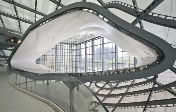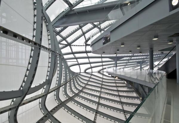 Il Centro Congressi Roma Eur è costruito in una zona strategica dello storico quartiere della capitale. La Nuvola, la Teca. la Lama Il progetto è sviluppato in tre parti distinti una zona sotterranea che riunisce le sale auditorium/polivalenti di minore portata, le sale utilizzate per i meeting, il concorse che crea il collegamento tra le due entrate, i servizi e i parcheggi di circa 600 posti auto; una “Teca” di 70 x 175 metri e 40 di altezza,che comprende la ‘Nuvola‘, un auditorium da 1760 posti; un albergo, chiamato la ‘Lama’ che conta 441 stanze. L’intera struttura nasce su di un’area di 55.000 mq, che va da viale Cristoforo Colombo, viale Europa, viale Shakespeare e viale Asia, ed è suddivisa tra 1330 mq delle conference rooms, 3500 mq dell’auditorium, 5580 mq del foyer e 3300 mq del centro commerciale. Interno della struttura in acciaio La Teca, orientata longitudinalmente, è una struttura in acciaio e doppia facciata in vetro che raccoglie al suo interno la Nuvola. La Nuvola è il fulcro, tanto dibattuto, del progetto, ed il punto strategico dell’intera struttura. Realizzata con una nervatura in acciaio è ricoperta da un telo trasparente di fibra di vetro di circa 15 mila metri quadri. All’interno vi sono anche luoghi di ristoro e i vari servizi a supporto all’auditorium. L’hotel, la ‘Lama’, è stato progettato, invece, come struttura completamente autonoma. In generale il Nuovo Centro Congressi è un’architettura di importante valore artistico, caratterizzata da soluzioni logistiche innovative e dalla scelta di materiali tecnologicamente avanzati. Il complesso è particolarmente flessibile, ed in grado di ospitare congressi, mostre, eventi espositivi, con una capienza che raggiunge in totale quasi 9.000 posti a sedere, Inoltre il Nuovo Centro è contraddistinto da un attento approccio eco-sostenibile, vale a dire un insieme di scelte indirizzate alla riduzione del consumo energetico. All’interno è stato scelto un sistema di climatizzazione a portata variabile dell’aria condizionata che permette un consumo ottimale di energia in funzione del reale affollamento dei locali; sulla copertura della teca sono stati sistemati pannelli fotovoltaici che consentono la produzione naturale di energia elettrica e contemporaneamente proteggono l’edificio dal surriscaldamento attraverso la mitigazione dei raggi del sole, oltre a permettere un importante risparmio sui consumi energetici rispetto a quelli necessari per ottenere il condizionamento di tutto il volume con un sistema tradizionale. a cura di Cristina Finco Consiglia questo progetto ai tuoi amici Commenta questo progetto