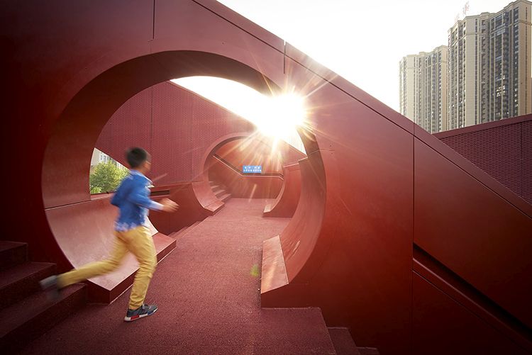 Lucky Knot Bridge, progettato da NEXT architects, è un ponte in acciaio non convenzionale, fluido, dinamico, annodato. Ispirato all’antica arte popolare del nodo cinese e al celebre nastro di Moebius. Indice degli argomenti: Il ponte del “nodo fortunato” Concept: l’arte del nodo cinese e Moebius L’intreccio dei diversi livelli Struttura, materiali e forma La metropoli cinese di Changsha può fregiarsi di un nuovo straordinario ponte, ben integrato nella cultura locale, simbiosi di tradizione e innovazione. Ispirato dall’antica arte popolare del nodo cinese – che evoca la buona fortuna – e dal celebre Nastro di Moebius. Lucky Knot è un ponte pedonale non convenzionale, ben distante dalle canoniche strutture lineari a pilastri in cemento armato e cavi d’acciaio a cui siamo abituati. Unisce parti della città che il fiume separa, ma con un segno fluido e spontaneo nel paesaggio urbano, che s’integra perfettamente con la cultura locale, evocandone natura, tradizione e innovazione. Lucky Knot Bridge, ideato e progettato dallo studio di architettura olandese NEXT architects, è lungo 185 metri e alto 24 metri: un nastro rosso di acciaio, si dispiega e intreccia nel paesaggio urbano unendo le due parti del parco fluviale e le sue diverse anime: parco, strade e sponde del fiume. Il ponte del “nodo fortunato” Lucky Knot Bridge è un ponte pedonale, ideato e progettato dallo studio di architettura “NEXT architects”, di origini olandesi ma con sedi sia ad Amsterdam che a Pechino, ed alle spalle importanti esperienze di infrastrutture acquatiche. E proprio a ragione di una di queste opere che nel 2013, in seguito al completamento del mozzafiato ponte Melkwegbridge a Purmerend in Olanda, NEXT è stata invitata a partecipare a un concorso internazionale per la progettazione del nuovo ponte da costruire sul fiume Dragon King Harbour nel “New Lake District” di Changsha, in Cina. Per questa commissione speciale, i team di Amsterdam e Pechino hanno unito le forze per creare un design unico e vincente: il ponte Lucky Knot. La combinazione dell’esperienza del team olandese nella gestione delle infrastrutture e dell’acqua e la perseveranza e la conoscenza del contesto locale del team cinese è stata una parte cruciale del processo. Il ponte è già diventato un’icona locale ed internazionale, ed è stato selezionato dalla CNN come uno degli 11 più spettacolari “ponti che rompono gli schemi“. “I progetti di NEXT per clienti internazionali e nazionali si distinguono per il loro singolare rapporto con l’ambiente circostante, per la valorizzazione dell’esperienza del luogo specifico e per il valore aggiunto del sito. Questo è anche il caso di Changsha. La città sta crescendo e cambiando rapidamente. Questo contesto richiedeva un gesto unico per ispirare i passanti“, commenta Michel Schreinemachers, partner di NEXT architects Amsterdam. Concept: l’arte del nodo cinese e Moebius Lucky Knot Bridge, tradotto letteralmente “ponte del nodo fortunato”, deve il nome e la forma all’antica arte popolare decorativa cinese dell’annodatura, che è associata alla buona fortuna. Gli architetti di Next architects, per il progetto del Ponte, infatti, traggono ispirazione dalla tecnica dei nodi cinesi, in combinazione con la celebre figura del Nastro di Möbius (superficie non orientabile, dove interno ed esterno sono indistinte e poste tra loro in continuità). “La forma del Lucky Knot è stata ispirata dal principio dell’anello di Möbius, oltre che dall’arte dell’annodatura cinese. Nell’antica arte popolare cinese decorativa, il nodo simboleggia fortuna e prosperità“, afferma John van de Water, partner di NEXT architects Beijing. Il ponte deve il suo fascino fantasioso alla combinazione di tradizione e modernità. Molti elementi progettuali sono ispirati dalla cultura cinese. Anche il colore rosso vivo, scelto non a caso, simboleggia la fortuna e la gioia. Il risultato visivo è spettacolare: una serie di curve che s’intrecciano e collidono – nel piano e nello spazio – come delle onde marine a differente intensità che uniscono le due sponde del fiume e, allo stesso tempo creano un collegamento tra le diverse entità presenti ai vari livelli parco, sponde, strada. Un nastro rosso che s’impenna e oscilla, toccando a volte il cielo, a volte la terra, in una successione vorticosa di percorsi fluttuanti, come le montagne russe. L’intreccio pedonale dei diversi livelli Il nuovo ponte è parte cruciale per lo sviluppo dell’intera area del parco fluviale. È stato infatti pensato e progettato per ricucire il tessuto urbano esistente, mirando a incentivare le attività ricreative, ecologiche e turistiche del territorio. Il ponte collega più livelli a diverse altezze (le sponde del fiume, la strada, il parco posto più in alto nonché le interconnessioni tra di loro). La forma finale del ponte è il risultato dell’annodare -letteralmente e metaforicamente – tutti questi percorsi insieme. Il ponte collega più livelli a diverse altezze: le sponde del fiume, la strada, il parco in alto. “Il Lucky Knot è più di un ponte e un collegamento tra due sponde del fiume. Il suo successo risiede nel riunire le culture e nella fusione di storia, tecnologia, arte, innovazione, architettura e spettacolo“, aggiunge Jiang Xiaofei, partner di NEXT architects a Pechino. Otto diversi accessi consentono ai pedoni di percorrere le tre passerelle come fosse un parco giochi pedonale. Le tre strutture si toccano, sovrapponendosi in cinque punti, denominati dal progettista Michel Schreimachers “Moon Gate” e richiamano il design delle montagne russe. Struttura, materiali e forma Il ponte è costituito da tre strutture interamente in acciaio rosso che si originano dalle due sponde e s’intrecciano, annodandosi a toccare i diversi livelli fino a superare il fiume posto al centro della suggestiva architettura. Costruito sul fiume Dragon King Harbour, ha una lun