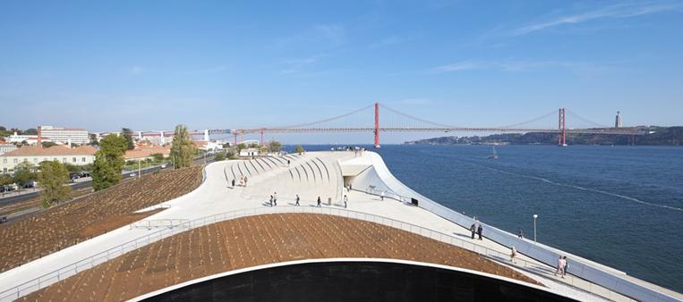 Architettura futuristica sul lungofiume di Lisbona. Lisbona è una città davvero ricca dal punto di vista culturale: si affaccia nel panorama di questa effervescente città il MAAT, nuovo museo di arte, architettura e tecnologia progettato dallo studio AL_A dell’architetto inglese Amanda Levete. Il nuovo centro culturale sorge lungo la sponda del fiume Tago ed è rivolto a ospitare un programma transdisciplinare di mostre ed eventi: Lisbona si appresta a diventare punto di riferimento per la cultura europea, grazie a un museo in cui tre discipline contemporanee dialogheranno tra loro. Il progetto di Amanda Levete è inserito nel più ampio contesto di rigenerazione urbana del quartiere di Belèm: l’architettura diventa punto d’incontro e dialogo tra l’antica Lisbona e la zona del fiume Tago, esclusa dalle dinamiche culturali a causa della presenza della ferrovia e di una super strada. La superficie del MAAT è completamente calpestabile. 15.000 mila piastrelle compongono la copertura del MAAT creando una superficie totalmente calpestabile: il tetto diventa parte integrante dell’edificio donando alla cittadinanza uno spazio pubblico da vivere per una passeggiata lungo il fiume. L’edificio di Amanda Levete non è pensato per essere a se stante, ma per essere un elemento immerso nella complessità della città. Il tetto del MAAT culmina in una terrazza panoramica con affaccio su Lisbona. È proprio la copertura dell’edificio l’elemento che colpisce maggiormente l’attenzione: questo spazio pubblico è caratterizzato da tratti dolci e curvi che declinano fino a “fondersi” con il Tago, simboleggiando così l’unione tra terra e fiume. Tra terra e acqua, tra fiume e città L’architettura trae ispirazione dal contesto: l’acqua diventa l’elemento focale della ricerca progettuale di Amanda Levete. L’architetto ha ricreato il movimento delle onde, così come ha scelto le ceramiche bianche in grado di riflettere le luci e le vibrazioni dell’acqua immergendosi nel Tago. Gli oltre 7 mila metri quadrati progettati dallo studio AL_A ristabiliscono la connessione tra le due zone della città, creando un nuovo spazio per i turisti e i cittadini e rilanciando così il lungofiume. Gli interni sono altrettanto interessanti: troviamo la sala ovale da cui partono le quattro gallerie che si snodano nella struttura sotto il livello del suolo, in un percorso che segue le curve morbide e spigolose del museo. Fabiana Valentini Consiglia questo progetto ai tuoi amici Commenta questo progetto