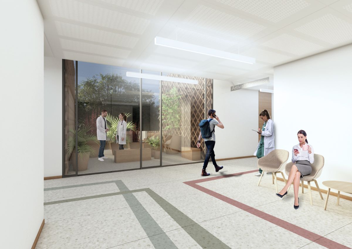 Finanziata da PNRR, la nuova struttura sanitaria verrà progettata dallo studio di architettura milanese Modourbano. Spesa prevista 11 milioni di euro. L’area su cui sorgerà è destinata a cambiare radicalmente l’assetto della zona prossima alla stazione ferroviaria. L’inizio dei lavori a ottobre, la consegna entro il 2026 A cura di: Pietro Mezzi I terrazzamenti creano un rapporto meno diretto e intrusivo nei confronti delle abitazioni circostanti (render, Modourbano) Indice degli argomenti Toggle La riqualificazione urbanaDue strutture sanitarie distinteFacciate eterogeneeLa Casa di comunitàL’Ospedale di comunità Sono 77 le Case di Comunità che entro il 2026 verranno realizzate in Toscana grazie ai fondi messi a disposizione del Piano nazionale di ripresa e resilienza. E 104 milioni a disposizione per lo scopo. A questi numeri si aggiungono i 24 Ospedali di comunità, con un investimento che sfiora i 57 milioni di euro. Uno delle strutture sanitarie integrate (Ospedale più Casa di comunità) è prevista anche a Massa Carrara, dove l’intervento usufruirà dei fondi del Piano nazionale, pari 11 milioni di euro, gestiti dalla Regione attraverso l’azienda Usl Toscana Nord Ovest. La nuova struttura sorgerà su un’area comunale, ora trasferita all’Usl, limitrofa alla stazione ferroviaria, una zona della città destinata a cambiare profondamente. L’azienda sanitaria locale si dice fiduciosa circa l’inizio dei lavori (previsto per ottobre), essendo già stato approvato l’affidamento all’impresa aggiudicataria dell’appalto integrato di progettazione ed esecuzione lavori. L’Ospedale di comunità occuperà una superficie di 900 metri quadrati e sarà dotato, come prevedono le norme ministeriali, 20 posti letto. La riqualificazione urbana L’intervento si inserisce in un progetto di riqualificazione urbana che ha l’obiettivo di restituire alla città un’area attualmente inutilizzata, che verrà riqualificata, per dare vita a un luogo che, collegando città e stazione ferroviaria, sarà di grande importanza sociale per il territorio. L’ingresso principale alla futura struttura sanitaria di Massa Carrara (render, Modourbano) Il progetto, che sorgerà in piazza IV Novembre, è stato predisposto dallo studio milanese ModoUrbano, uno studio di architettura specializzato nella progettazione nei settori residenziale, banking, corporate & retail e che collabora con brand di primaria importanza. Due strutture sanitarie distinte Il lotto, che separa la città dalla linea ferroviaria, confina a nord con diversi edifici: un fabbricato adibito al Dopo lavoro ferroviario, una palazzina residenziale, un immobile abbandonato e un parcheggio a servizio del centro commerciale. L’ingresso del pronto soccorso (render, Modourbano) A sud sorge la linea ferroviaria, i cui binari sono confinanti con il lotto, mentre ad est sono presenti le banchine di stazionamento degli autobus di linea, la stazione e la piazza IV Novembre. La struttura, seguendo la morfologia del lotto, viene costruita parallelamente ai binari sul confine tra città e ferrovia. L’edificio, oltre all’ingresso principale, presenta due punti di accesso, uno a nord e uno a sud. Il primo è prevalentemente pedonale e si collega al parcheggio interrato riservato ai dipendenti, mentre il secondo dispone di un passo carrabile per gli utenti e le ambulanze. Il progetto è stato concepito come un solo volume a tre piani, distinguendo le due funzioni, Ospedale e Casa di Comunità, in modo planimetrico: nell’ala settentrionale si colloca l’Ospedale, mentre in quella meridionale la Casa Comunità, entrambi con affaccio principale su piazza IV Novembre. Facciate eterogenee Rapportandosi a contesti differenti, le due facciate si presentano in maniera molto eterogenea. Il lato della stazione figura come un volume duro e uniforme, rivestito da un sistema di oscuranti esterni aventi una trama romboidale realizzata in cotto che si ripropone anche nella facciata a sud, con la differenza di un grande sbalzo di cinque metri che segnala l’ingresso principale caratterizzato da una grande apertura vetrata. Una serie di terrazzamenti è presente negli altri due lati per creare un rapporto meno diretto e intrusivo nei confronti delle abitazioni circostanti, allontanandosi dal confine man mano che si sale di piano. Le aperture vetrate, invece, sono libere e scandite da una serie di lame verticali metalliche che contribuiscono a disegnare il prospetto dell’edificio. L’ultimo elemento caratteristico è costituito dalle corti, distribuite lungo l’intero perimetro, le quali garantiscono respiro all’andamento lineare del prospetto e diffondono un’illuminazione uniforme negli spazi di distribuzione. La Casa di comunità Il funzionamento planimetrico del complesso è molto semplice: tutti e tre i piani che compongono la Casa di comunità presentano un corridoio centrale a cui si accede dall’area accettazione-accoglienza. Sono presenti, accessibili dall’asse di distribuzione centrale, tre sistemi di collegamento verticale, ognuno dei quali è composto da ascensore e scale ed è collocato in modo da garantire una sicura evacuazione in caso di incendio. Una sala interna alla struttura (render, Modourbano) Le funzioni che costituiscono la base della Casa di comunità (uffici e ambulatori) sono state distribuite lungo il perimetro dell’edificio, mentre nelle porzioni centrali non illuminate sono stati posizionati tutti i servizi igienici, magazzini e depositi. Al piano terra, il blocco scale centrale definisce la separazione tra Ospedale e Casa di comunità, disponendo in diretta connessione le due funzioni, ma con la possibilità di predisporre anche una separazione fisica. L’Ospedale di comunità All’Ospedale di comunità si accede dal lato Ovest, in prossimità di un cortile, con accesso pedonale da via Carducci. Una volta entrati lo spazio si divide in due direzioni. Nella porzione settentrionale sono state inserite l