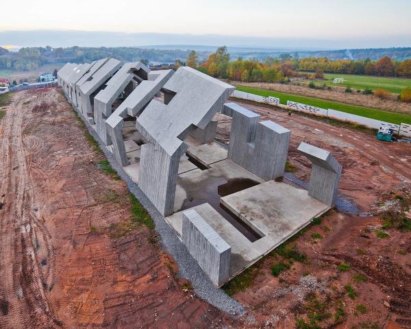 Il sito del Mausoleo dei martiri dei villaggi polacchi in Michniów ha una forma architettonica scultorea monolitica per dare origine a una mostra multimediale e per trasmettere il dramma del passato. Il Mausoleo del martirio di villaggi polacchi è un progetto commissionato dal Museo della regione di Kielce al fine di commemorare le vittime della repressione subita dalle comunità rurali in Polonia durante l’occupazione tedesca. Michniów – pacificata il 12 luglio 1943 – oggi è un simbolo di pace per tutti i popoli che hanno subito la seconda guerra mondiale. Il sito dove il mausoleo è costruito è usato per essere un luogo simbolo della memoria dedicato a quei tragici eventi: inizialmente, una fossa comune delle vittime fu eretta (nel 1945), seguita dalla scultura “Pietà di Michniów” e dalla Casa della Memoria nazionale. La struttura monolitica dell’oggetto è creata usando giunti completamente impermeabili in calcestruzzo. Si tratta di pilastri di cemento armato che si innalzano dalla piastra di fondazione e sono uniti sul tetto. Sostenere il guscio esterno serve sia come elevazione, sia come strato isolante. Le pareti inclinate sono state progettate per contenere elementi “nascosti” come condotti di ventilazione, telecomunicazioni e infrastrutture elettriche. Il disegno creato dallo studio Mirosław Nizio prevede che le superfici visibili di elementi in cemento armato riproducano le caratteristiche strutturali del legno. Questo effetto si ottiene applicando sulla superficie – mediante stampa a matrice – uno speciale strato sottile per riparare la struttura in cemento armato. Queste impressioni sono state applicate sulle falde del tetto, sulle pareti interne e su quelle laterali L’edificio ha una caratteristica struttura segmentata. Il tessuto viene tagliato da fessure che dividono la forma architettonica in pezzi chiusi ed aperti. Questa forma è il risultato delle ispirazioni scultoree e crea l’idea dell’architettura e della narrazione storica. Inoltre, è stato richiesta la necessità di adeguare l’edificio alla forma del sito con una pendenza del 10-15%. Parallelamente alla narrazione, l’edificio subisce deformazioni e “distruzione” che convoglia simbolicamente l’annientamento che ha avuto luogo qui. La superficie totale della trama è di oltre 16.200 metri quadrati. Il centro espositivo museale è di circa 1.700 metri quadrati, mentre le mostre temporanee occuperanno 270 metri quadrati. Consiglia questo progetto ai tuoi amici Commenta questo progetto