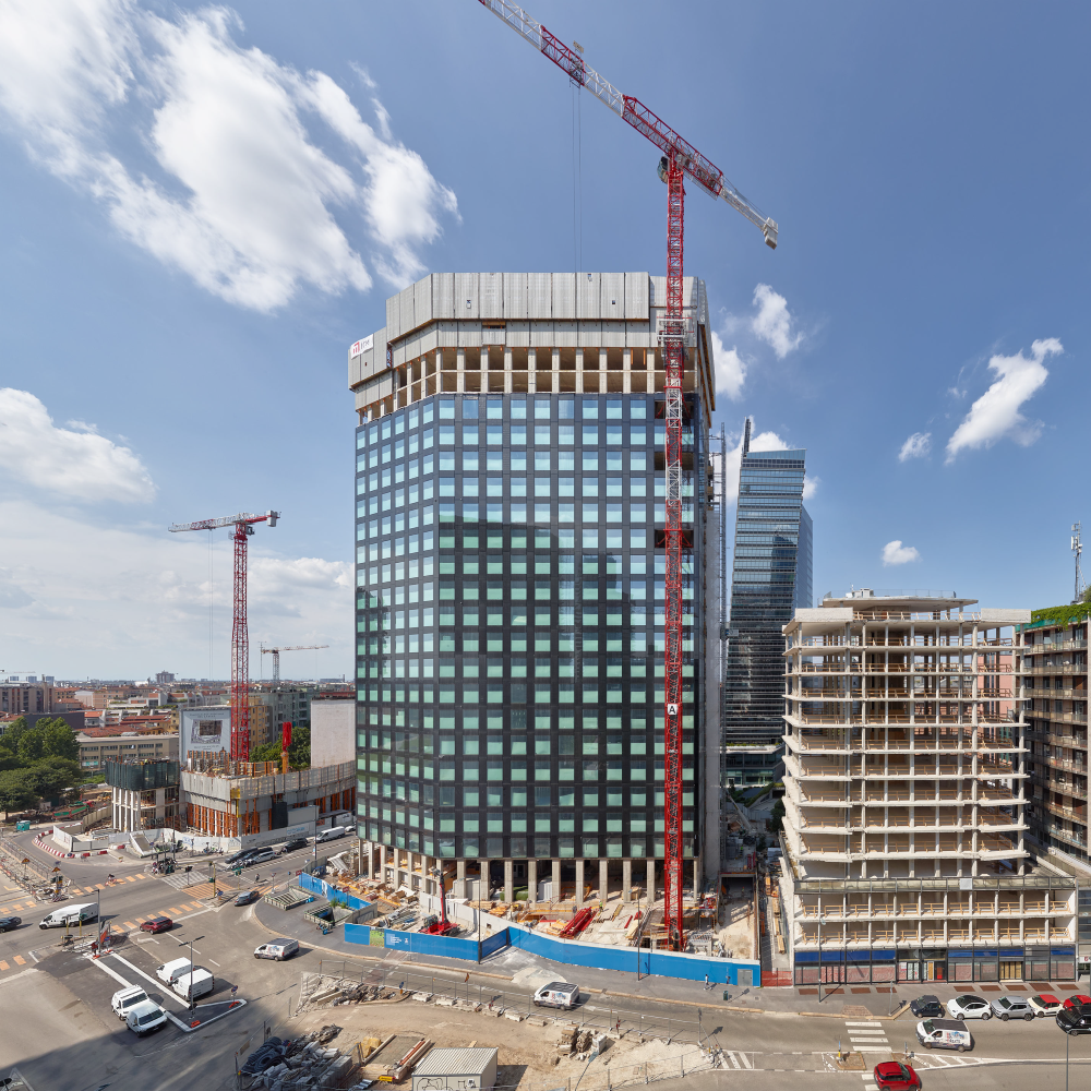 Nonostante il momento difficile per l’edilizia del capoluogo, nel distretto direzionale milanese Coima porta a termine altri due interventi di riqualificazione. Se per Pirelli 35 la consegna ai tenant è questione di giorni, per I Portali i lavori sono arrivati al tetto. A firmare i progetti importanti studi di architettura: Snøhetta e Park Associati per il primo, ACPV Architects per il secondo A cura di: Pietro Mezzi Il complesso per uffici di Pirelli 35 a Milano Porta Nuova Gioia Indice degli argomenti Toggle Pirelli 35 in cifreI Portali in cifreParlano i protagonistiI numeri di Porta NuovaL’occupazione di Pirelli 35 e I Portali Nonostante i timori degli operatori immobiliari emersi dopo le inchieste della magistratura su presunte violazioni delle norme urbanistiche riguardanti alcune pratiche edilizie comunali, proseguono quasi senza sosta le operazioni di trasformazione della Milano che cambia. È di pochi giorni fa infatti la notizia che Coima, società di sviluppo e gestione di patrimoni immobiliari, nel distretto urbano di Porta Nuova, su progetto di ACPV Architects, ha completato la struttura della torre Est de I Portali di via Melchiorre Gioia 20 e 21e, contemporaneamente, ha annunciato la fine dei lavori di Pirelli 35, un edificio completamente ristrutturato frutto del progetto degli studi di architettura Snøhetta e Park Associati. Il complesso I Portali di via Melchiorre Gioia a Milano Porta Nuova Si tratta di due interventi edilizi di alta qualità, che confermano Porta Nuova come uno dei luoghi privilegiati della città, all’interno del quale le grandi compagnie internazionali insediano i propri uffici e i loro quartier generali. Nella visita ai due cantieri avvenuta nei giorni scorsi sono stati presentati gli spazi di Pirelli 35 ed è stato festeggiato il completamento della copertura della torre Est de I Portali, con la posa della bandiera italiana sul tetto del fabbricato. Per Pirelli 35 erano presenti gli architetti Michele Rossi di Park Associati e Peter French di Snøhetta, in compagnia di Andrea Maraschin, direttore tecnico dell’impresa costruttrice Carron; per I Portali, con Manfredi Catella, fondatore e ceo di Coima, gli architetti Patricia Viel e Antonio Citterio di ACPV Architects e Gianfranco Simonetto, presidente del Gruppo ICM, impresa che ha realizzato l’opera. Pirelli 35 in cifre Per Pirelli 35, la cui consegna degli uffici è prevista per questo mese, si tratta di 40mila metri quadrati di uffici distribuiti su due livelli, di cinque e dieci piani. È stato uno degli edifici simbolo del centro direzionale della Milano degli Anni ‘60, quando fu sede prima di Stipel poi di Telecom Italia, che ha occupato l’immobile fino al 2018. Il complesso per uffici di Pirelli 35 Coima ha promosso la riqualificazione dell’edificio, il cui restyling è stato ideato da Snøhetta, al primo progetto in Italia, e Park Associati, selezionati tramite un concorso internazionale di architettura. Il progetto, ideato in origine da Melchiorre Bega, ha previsto la totale riqualificazione delle strutture del fabbricato e ha trasformato il complesso da organismo chiuso su se stesso in spazio permeabile, caratterizzato da due elementi architettonici che si intrecciano e formano una piazza interna di circa tremila metri quadrati. Grazie alle caratteristiche dell’edificio, i cui lavori di riqualificazione hanno preso avvio nel 2021, Pirelli 35 ha ottenuto le certificazioni Leed Platinum, WiredScore Platinum e Cradle-to-Cradle Supply Chain. Si stima che vi possono lavorare più di quattromila persone, mentre 1.500 sono i posti di lavoro direttamente attivati grazie allo sviluppo progettuale e costruttivo. Planivolumetrico del complesso Coima ha coordinato il progetto in qualità di asset manager, mentre Coima Rem ha svolto il ruolo di development & property manager per la gestione tecnica dello sviluppo urbano ed edilizio. I Portali in cifre Si tratta di due torri, la Ovest di 64 metri di altezza e la Est di 98 metri per 24 piani, la cui superficie commerciali è pari a 75mila metri quadrati. La facciata della torre Est integra le lastre di vetro fotovoltaico per la produzione di oltre 800 mila kilowatt di energia pulita all’anno. I pannelli fotovoltaici e gli elementi strutturali verticali si uniscono senza soluzione di continuità, aumentando le prestazioni dell’involucro edilizio e fungendo da filtro visivo tra gli spazi interni ed esterni, formando un reticolo con ampie aperture finestrate che aprono gli uffici alla luce naturale. Il complesso I Portali in fase di costruzione I moduli di facciata lungo l’altezza delle colonne portanti sono costituiti da telai in alluminio a taglio termico isolati con lana minerale. Le celle fotovoltaiche sono integrate nell’intercalare e sono strutturalmente sigillate al telaio di alluminio. I Portali sarà il primo progetto in Italia a utilizzare impianti ascensori Twin, prodotti da TK Elevator, con due cabine indipendenti funzionanti nello stesso vano corsa. Le due torri di 64 e 98 metri Grazie a sistemi di gestione delle risorse di tipo innovativo, il consumo di acqua e di energia è ridotto di oltre il 60% rispetto a un intervento di tipo tradizionale. Le due torri sono state progettate per conseguire le certificazioni ambientali Leed Platinum, Well Gold e WiredScore Platinum. Con questo intervento verranno realizzati 20mila metri quadrati di spazi ciclopedonali, che si aggiungeranno ai 120 mila realizzati nella prima fase di Porta Nuova e ai 12 mila che conducono alla Fondazione Feltrinelli. Il complesso I Portali visto da via Melchiorre Gioia Il progetto si caratterizza per gli aspetti di dialogo con il tessuto circostante, al quale si riconnette grazie alle aree pubbliche adiacenti, completamente ripensate con la realizzazione di una nuova piazza, che compone il mosaico di aree pedonali e pubbliche del masterplan di Porta Nuova Gioia, che estende il perimetro della Biblioteca degli Alberi Milano sull’asse di via Melchio