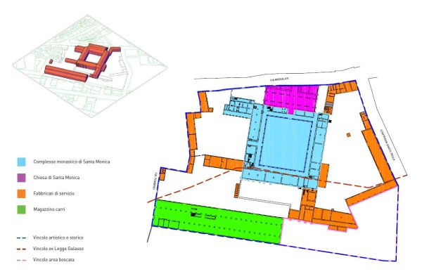 Implementare l’attuale offerta formativa e culturale dell’Università Cattolica del Sacro Cuore di Cremona con proposte didattiche innovative, recuperando tramite un attento intervento di ristrutturazione lo storico ex Monastero di Santa Monica e il Magazzino Carri: sono questi i due obiettivi condivisi e presentati presso la sede della Fondazione Giovanni e Luciana Arvedi da tutti i soggetti pubblici e privati promotori dell’Accordo di Programma. A cura di Silvia Giacometti La presenza di sedi distaccate degli Atenei è oggi generalmente vista come problematica, sia per i costi che per la difficoltà di mantenere un elevato livello scientifico e didattico. In realtà una presenza diffusa sul territorio di centri di ricerca e didattica può costituire un punto di forza per lo sviluppo, a condizione però che vi sia una stretta e coordinata collaborazione con il territorio stesso e che gli obbiettivi non siano solo locali, ma anche internazionali. Gli Enti locali di Cremona, la Regione Lombardia e la Fondazione Arvedi – Buschini stanno consentendo all’’Università Cattolica del Sacro Cuore di realizzare un progetto di questo tipo, fortemente legato a una delle realtà che caratterizzano il territorio cremonese, le produzioni agro-alimentari, ma con un orizzonte internazionale, capace di preparare generazioni di laureati in grado di contribuire allo sviluppo internazionale di questo segmento produttivo. Inquadramento nella città della nuova sede universitaria Il progetto strutturale prevede il trasferimento delle funzioni dell’Università Cattolica del Sacro Cuore dalla attuale sede di via Milano, 24 al complesso dell’ex caserma Goito con un potenziamento di aule, spazi di servizio e centri di ricerca. La nuova struttura del Campus universitario andrà a valorizzare l’antico Monastero e l’ex Chiesa di S. Monica, la possente struttura militare del Magazzino Carri, le mura storiche poste a confine con l’antica area fluviale di Cremona e l’adiacente area boscata, polmone verde di oltre 3.000 mq, oltre all’insieme degli altri spazi aperti che, grazie alla permeabilità dei percorsi pedonali, saranno a disposizione della cittadinanza. Affresco della volta centrale dell’ex chiesa di S. Monica L’ingresso principale al Campus è previsto da via Bissolati, dove si prevede un ridisegno degli spazi esterni a formare un’adeguata porta di ingresso all’Ateneo. Gli spazi per la didattica vengono principalmente localizzati nella struttura dell’ex Magazzino dei Carri, dove sono presenti anche le aule studio per l’approfondimento individuale. La struttura militare del Magazzino Carri Al piano terra dell’ex Monastero sono state localizzate le funzioni di servizio alla didattica, come la zona segreteria/accoglienza negli spazi che una volta furono infermeria e parlatoi delle monache, gli spazi caffetteria e biblioteca nei locali un tempo refettorio e cucina dell’antico cenobio. Sempre nella struttura dell’ex Monastero è prevista la realizzazione dei laboratori a servizio dei corsi di laurea (piano terra), le aule per i corsi master e gli uffici dei docenti (piano primo), oltre a laboratori e uffici del Centro di ricerca Cremona Food Lab. Fabbricato denominato Casa del Maresciallo. Lavori non completati L’articolazione degli spazi esterni prevede l’individuazione di una gerarchia di spazi: Spazio del silenzio, della tranquillità, della meditazione, della bellezza; Spazi di aggregazione, dove sono presenti elementi di seduta e pavimentazioni di qualità per dare identità al luogo; Spazi per gioco e relax, dove prevale il verde e dove sono collocate le attrezzature per lo sport (campi polivalenti), per il divertimento e per il relax degli studenti. Pianta del progetto del nuovo Campus universitario di Cremona A questi si aggiungono gli spazi di servizio, contenenti normalmente funzioni parcheggio e locali tecnici/carico scarico. Nell’area una volta destinata a viridarium delle monache verranno infatti ricavati due parcheggi: un primo parcheggio ad uso privato a disposizione dei docenti dell’ateneo e un secondo, ad uso pubblico, per gli utenti esterni e per la cittadinanza. All’interno del Campus verrà realizzata una zona di ricovero per cicli e motocicli. L’Aula Magna troverà luogo nell’ex chiesa di Monica, e avrà una capienza di oltre 100 posti. Con l’intervento di restauro concordato con la Soprintendenza si riporterà all’originale splendore la struttura seicentesca della chiesa, mantenendo allo stesso tempo visibili gli interventi successivi di epoca militare che ne hanno caratterizzato la storia recente. Il portico dopo i lavori di restauro Il nuovo campus universitario permetterà, tra l’altro, di dare ulteriore impulso a “Cremona Food Lab”, progetto elaborato dall’Università Cattolica, congiuntamente a CREA-ZA, Comune e Camera di Commercio di Cremona, vincitore nel 2015 dei “Contributi emblematici” di Fondazione Cariplo, il cui sviluppo è limitato dall’assoluta carenza di spazi e dall’inadeguatezza dell’attuale sede universitaria di via Milano. L’intento del progetto è quello di creare una importante rete tra l’Università Cattolica dei Cremona e le aziende agro-alimentari del territorio, mettendo a disposizione impianti pilota (che verranno poi trasferiti nella nuova sede), servizi di formazione e ricerca, attività difficilmente alla portata di aziende micro, piccole e anche medie come una buona parte di quelle che operano nel comparto agro-alimentare. La nuova sede, unitamente al rinnovato progetto didattico-scientifico, consentirà di rafforzare tale rete e di potenziare l’offerta formativa post-laurea di master e di corsi “executive”, fornendo così occasioni di “formazione permanente” e aggiornamento. Lo sviluppo del “Food Made in Italy” è una delle scommesse per il futuro; il settore agro-alimentare e l’internazionalizzazione, insieme al servizio al territorio, saranno i drivers della pres