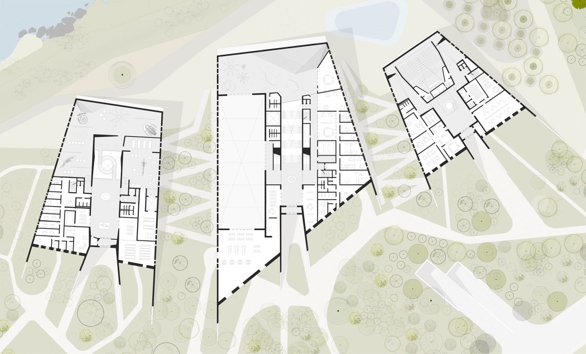 Lo studio di architettura di Andrea Rossi, Giovanni Sanna e Pierluigi Turco vince il concorso internazionale di progettazione del Museo nazionale di arte contemporanea, del Museo di storia naturale e del Parco delle arti e della cultura della capitale montenegrina. Un nuovo attrattore urbano sulle rive del Morača A cura di: Pietro Mezzi Indice degli argomenti Toggle Architettura iconicaNuovo attrattore urbanoIl progetto del paesaggio Lo studio di architettura a-fact, che ha uffici a Milano e Londra, ha vinto il concorso internazionale per la realizzazione del Museo nazionale di arte contemporanea, del Museo di storia naturale e del Parco delle arti e della cultura di Podgorica, in Montenegro. Il team di progettazione – composto da LAND, Maffeis Engineering e Charcoalblue – si è aggiudicato la competizione indetta dal ministero della Pianificazione territoriale, dell’urbanistica e del demanio del Montenegro. Il progetto è stato selezionato da una giuria internazionale, superando la concorrenza di 48 altri studi di livello internazionale, tra cui Sou Fujimoto, Junya Ishigami, Diller Scofidio + Renfro, Snøhetta, MCA – Mario Cucinella Architects e Stefano Boeri Architetti. Architettura iconica Si tratta, secondo Andrea Rossi, Giovanni Sanna e Pierluigi Turco, co-fondatori di a-fact, di un’architettura iconica “capace di connettere cultura e natura, ricongiungendo il fiume Morača con la città. Il nuovo distretto Arts & Culture sarà catalizzatore della vita sociale di Podgorica, diventando un attrattore pubblico vivo e dinamico. Gli edifici vogliono promuovere un nuovo paradigma di sostenibilità incoraggiando l’interazione tra spazi interni ed esterni ed esplorando l’uso contemporaneo di materiali e tecniche costruttive locali”. Per la giuria il progetto merita per la “composizione architettonica composta da tre volumetrie distinte ma correlate, che emergono dalle rive del fiume e danno vita a un nuovo landmark della città, una destinazione civica sia per i residenti che per i visitatori. La proposta progettuale trae ispirazione dalla splendida natura del Montenegro, mentre le facciate in pietra rendono omaggio alle montagne circostanti e danno vita a un nuovo linguaggio architettonico che si fonde con il parco e il fiume”. Nuovo attrattore urbano Il nuovo Distretto Museale e il Parco delle Arti e della Cultura sarà un nuovo attrattore urbano e ospiterà un vasto programma di eventi pubblici per celebrare la cultura, l’arte e il patrimonio storico del luogo. La sua architettura iconica potrà attrarre visitatori da tutto il mondo, favorendo lo scambio interculturale e promuovendo l’economia creativa. Il Museo di Arte Contemporanea, il Museo di Storia Naturale e la Casa dell’Architettura proporranno esibizioni permanenti e temporanee, laboratori di ricerca e didattica, spazi meeting informali, il nuovo giardino botanico e un grande spazio esterno flessibile per eventi che completa il nuovo waterfront, con nuove prospettive del fiume e della città. Il progetto del paesaggio Ciò che gli edifici tolgono alla terra viene restituito con un tetto rigoglioso che si fonde con il paesaggio e si trasforma in un nuovo luogo di ritrovo all’aperto, con vista sul lungo fiume. La copertura verde dissolve le linee tra l’edificio e il terreno, garantendo un movimento continuo attraverso il paesaggio, che arricchisce la biodiversità del luogo. I volumi distinti e correlati dei musei lungo il fiume Morača Il progetto del paesaggio, con la sua infrastruttura verde-blu, parte dall’analisi del sito con il proposito di incorporare i valori esistenti e di migliorare la biodiversità del parco con il mantenimento di 290 alberi, l’aggiunta di 532 nuovi esemplari di essenze diverse e di 900 arbusti. Il progetto enfatizza le connessioni del parco museale con la città, con particolare attenzione al lungofiume e a una migliore fruibilità da parte dei cittadini. Le scelte si ripercuotono in maniera positiva sulle prestazioni ambientali del progetto per quanto riguarda il sequestro di carbonio, la produzione di ossigeno e l’abbattimento di particolati. La planimetria del complesso “Il nostro è un progetto di visione di un’architettura che genera un nuovo paesaggio fluviale e connette così il fiume con la città – sostiene Andreas Kipar, fondatore di LAND -. Il progetto è un contributo alla rigenerazione dei fiumi all’interno dell’European Nature Restoration Law”. Le piante del Museo di Arte Contemporanea, del Museo di Storia Naturale e della Casa dell’Architettura La sostenibilità è al centro della proposta progettuale, che mira ad adottare e integrare strategie ambientali passive e attive volte a ridurre il consumo energetico complessivo per riscaldamento, raffreddamento, illuminazione artificiale e uso di acqua potabile. Un interno del museo L’implementazione di tecniche di costruzione innovative, unite all’utilizzo di materiali locali, genererà un impatto positivo sull’intero ciclo di vita degli edifici e sulla loro riduzione globale di emissioni di anidride carbonica. a-fact Lo studio, fondato nel 2022 da Andrea Rossi, Giovanni Sanna e Pierluigi Turco, ha firmato diversi interventi in Italia e all’estero. Tra questi, la Stazione marittima di Palermo, il complesso residenziale Podium a Roma, l’Hotel e il centro congressi a Palermo, il Museo della Scienza a Roma, il Design District di Udine, il Mia Museum for Log Driving di Fetsund in Norvegia. Sezione di uno dei musei Scheda progetto Museo nazionale di arte contemporanea Località: Podgorica, Montenegro Cliente: ministero della Pianificazione territoriale, dell’urbanistica e del demanio Manifestazione: Concorso internazionale Anno: 2024 Progettazione: a-fact Landscape design: LAND Italia Progetto strutture e facciate: Maffeis Engineering Experience design: Charcoalblue Superficie: 14.500 mq Render: EmmeWorks Consiglia questo progetto ai tuoi amici Commenta questo progetto